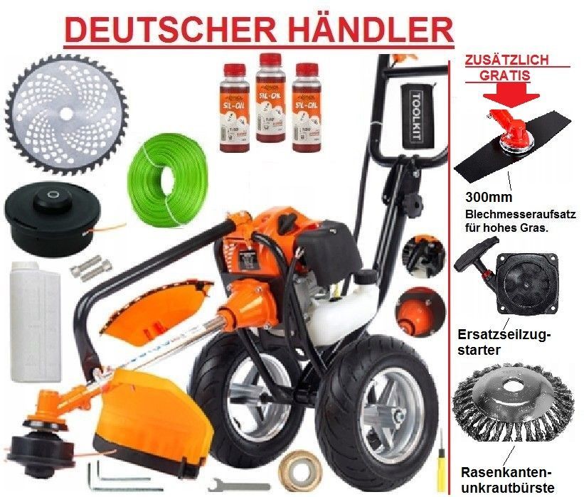 Motorsense 5,2PS Benzin auf Rädern Freischneider Trimmer mit Widia und Blechmesser