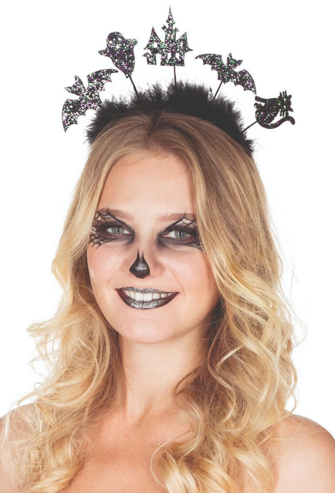 Mottoland 43306 - Glitzer Halloween Haarreif, Fledermaus Katze Geist Schloss