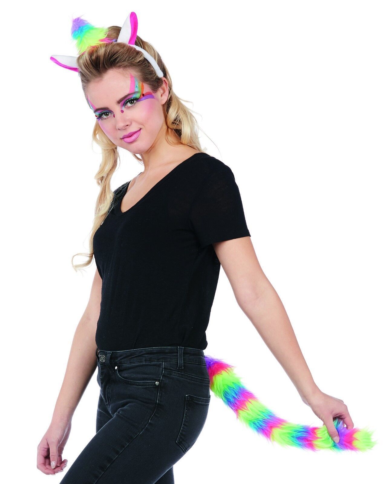 Einhorn Set von Mottoland Reite als Einhorn zum Ende des Regenbogens. Einhorn-Set bestehend aus einem Haarreif mit Ohren und Horn, sowie einem langen Einhornschwanz. Horn und Schwanz sind aus Plüsch in Regenbogenfarben. Beinhaltet Haarreif, Schweif Warenzusammensetzung 100% Polyester Grö ße STD Idea
