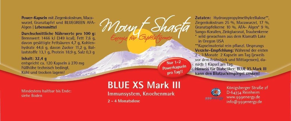 Mount Shasta BLUE XS Mark III 32,4g ca.120 Kapseln à 270 mg