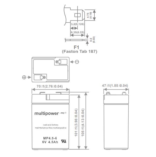 MP4.5-6 Multipower AGM-Akku 6V/4.5Ah Faston 4,8 Freizeit Hobby Alarmtechnik