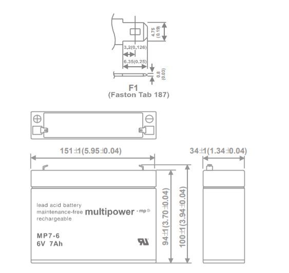 MP7-6 Multipower AGM-Akku 6V/7Ah Faston 4,8 Freizeit Hobby Alarmtechnik