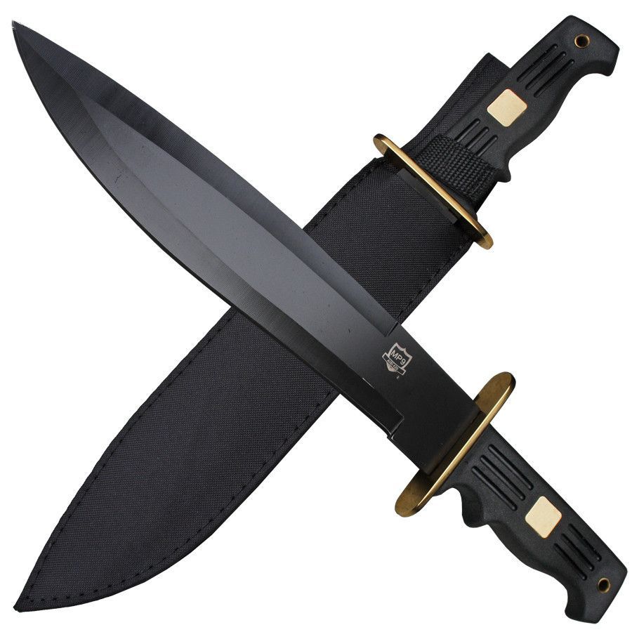 MP9 MP9 Bowiemesser Jagdmesser Outdoormesser mit Hartgummigriff Glattschliff, Nylonetui