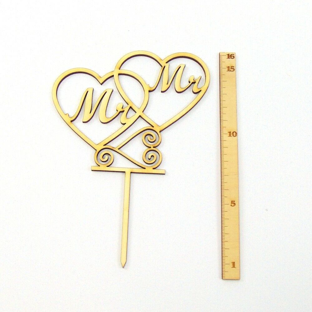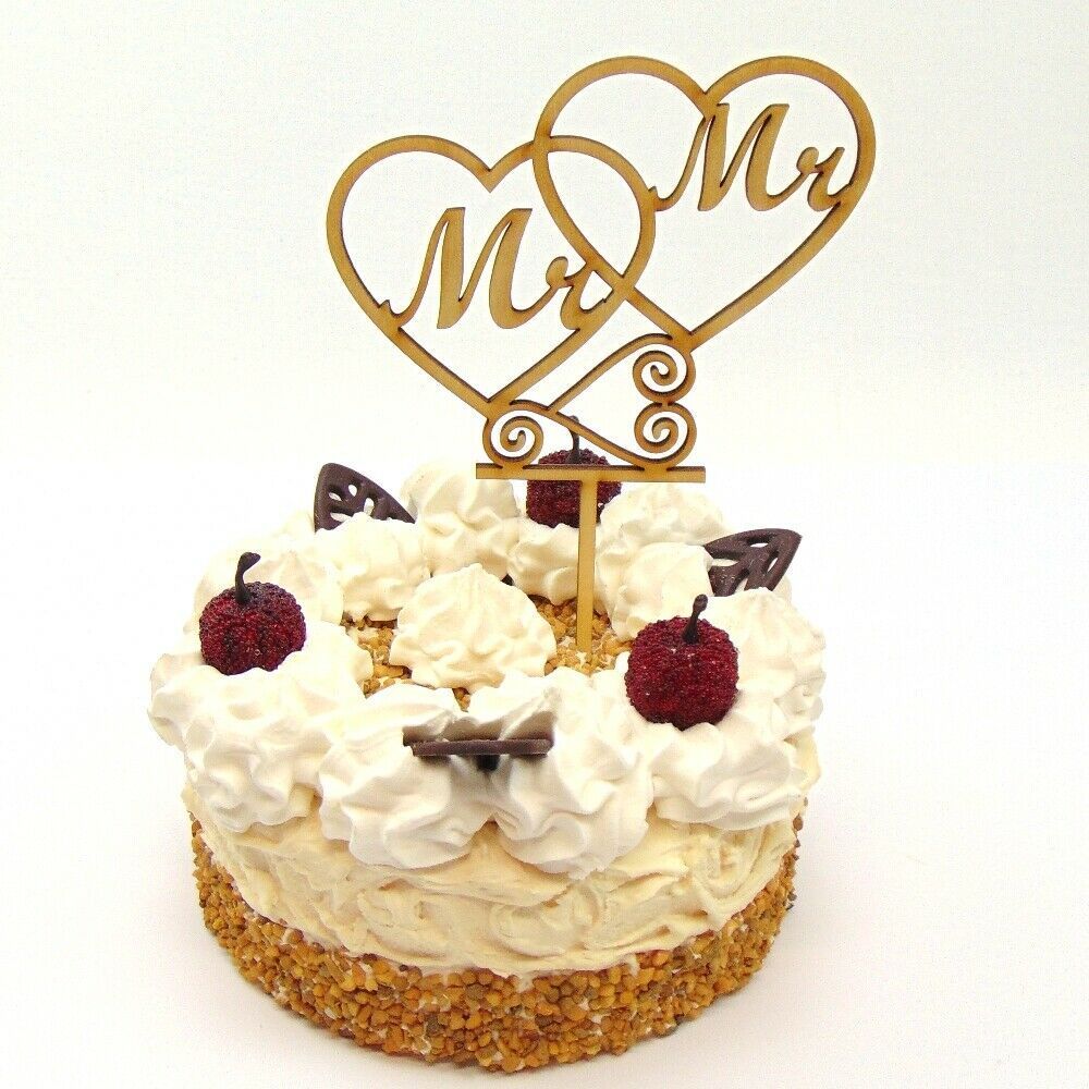 Mr & Mr Tortenstecker im Herzen Torten Topper Filigran 16 cm aus Natur Holz