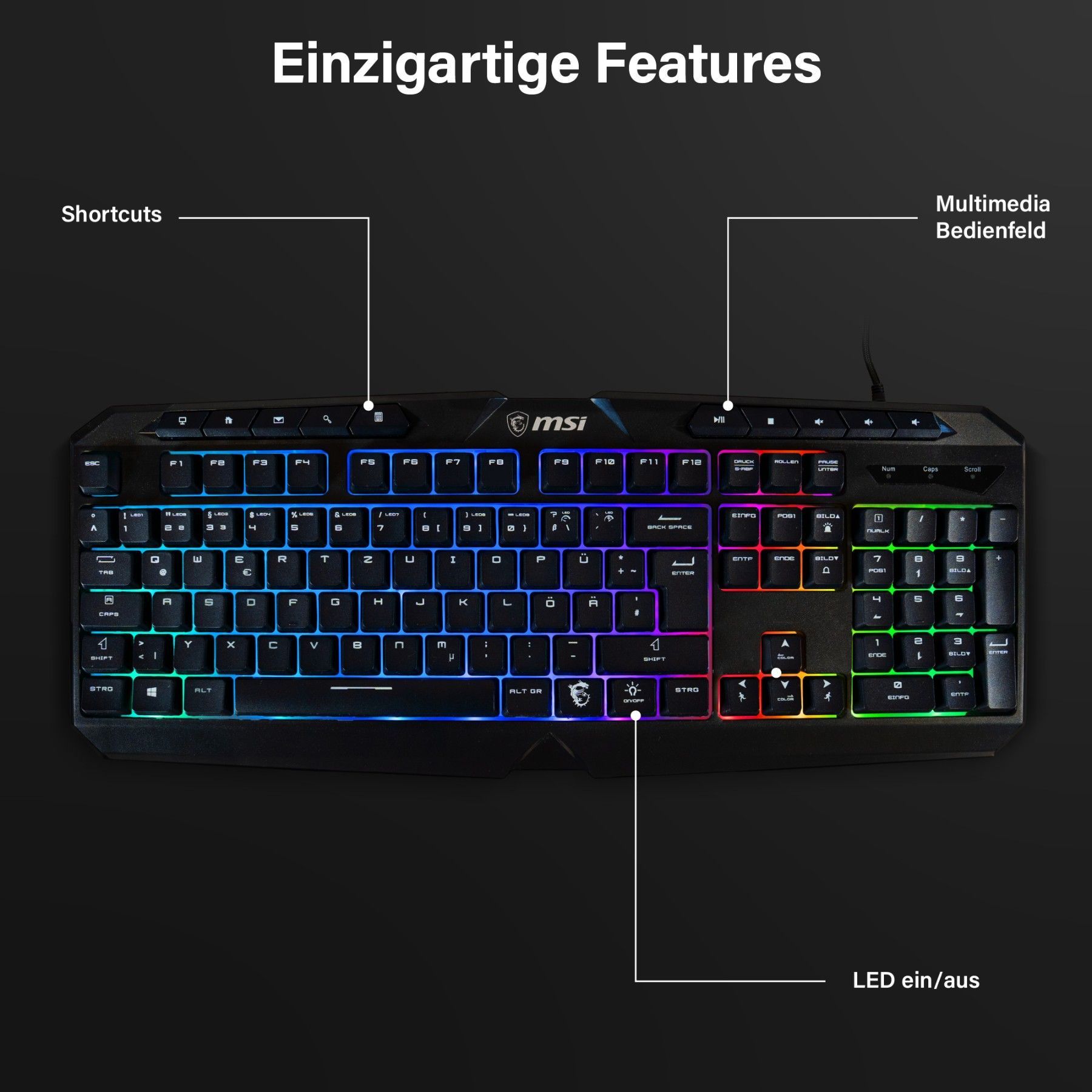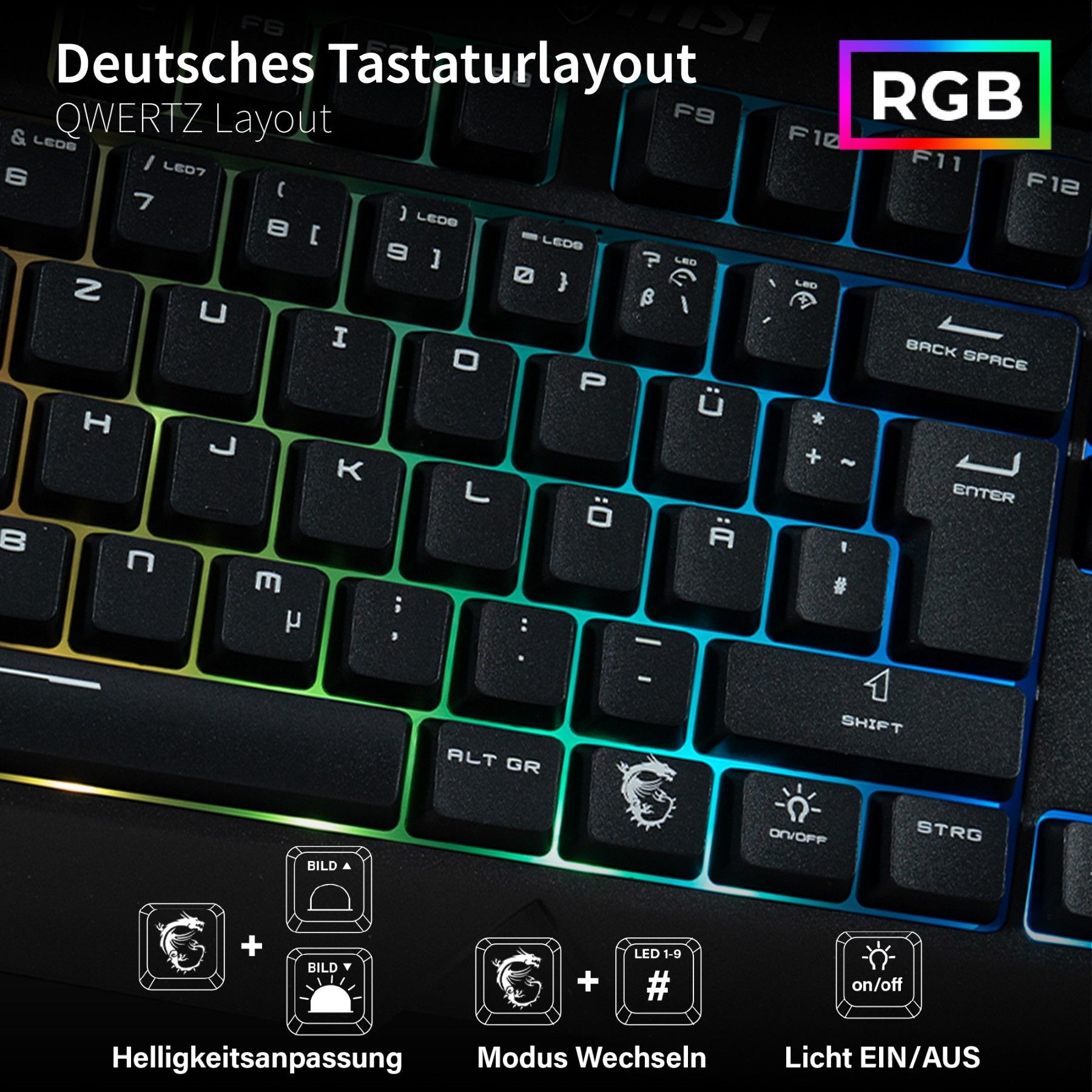 MSI Gaming Tastatur + Maus | QWERTZ | Membran | Silent & Kabelgebunden | RGB