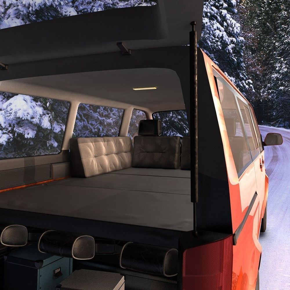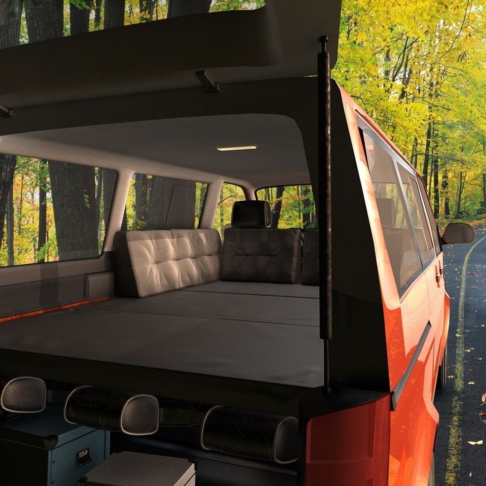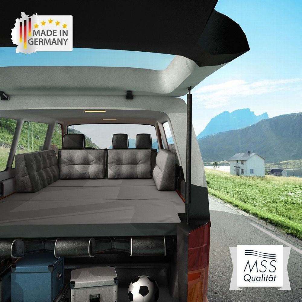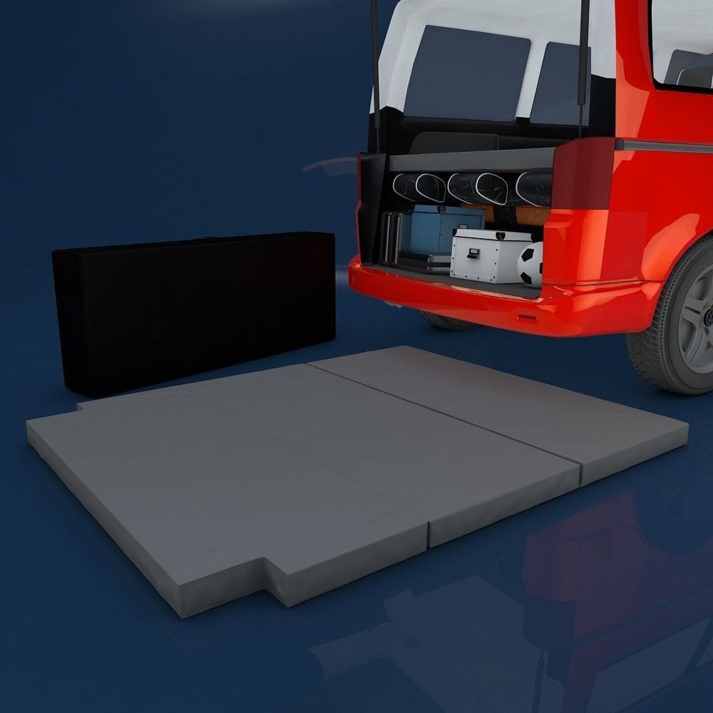 Die Matratze ist angepriesen als "passend für T4". Leider passt sie eben nicht in den T4. Der Ausschnitt hinten links an der Rückleuchte passt, der auf der anderen Seite, am Kasten für die Klima im Fond passt gar nicht. Dort fehlt der Ausschnitt. Angeblich 1 cm Platz zur Innenverkleidung stimmt auch nicht, das sind locker 5-8 cm. Der Kunststoff außen ist eher fürs Hundekörbchen gedacht, für mich muss da unbedingt noch ein Topper drauf. Also auch hier Verbesserungspotential.
