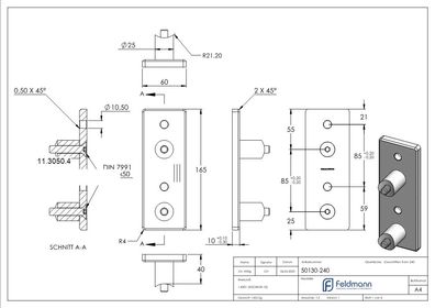 • Wandbefestigung Maße: 130 x 60 für Geländerpfosten 42,4 mm | V2A