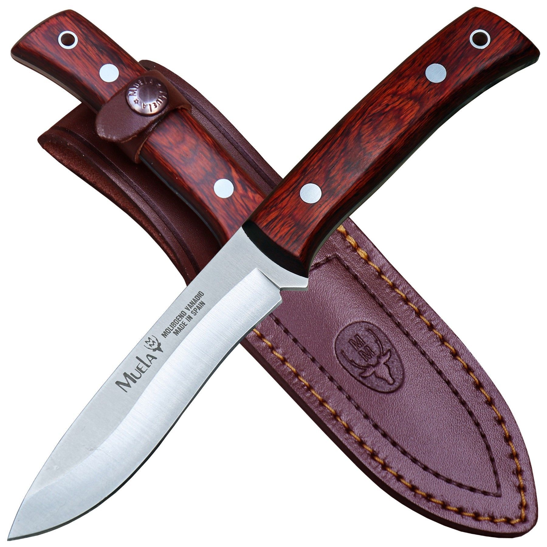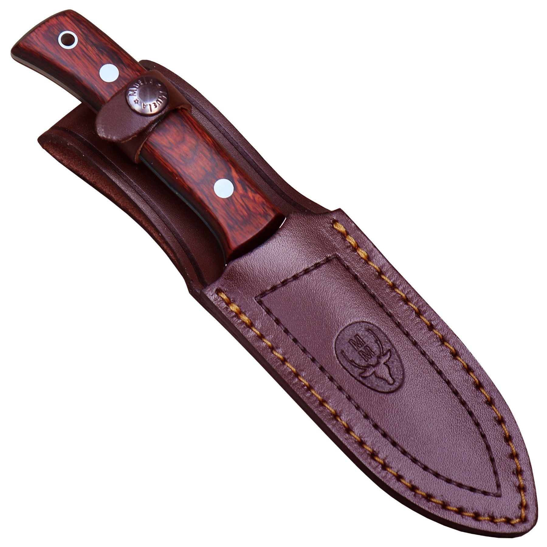 Muela Muela Jagdmesser Outdoormesser Flachangelklinge Sandelholz-Schalen Lederscheide