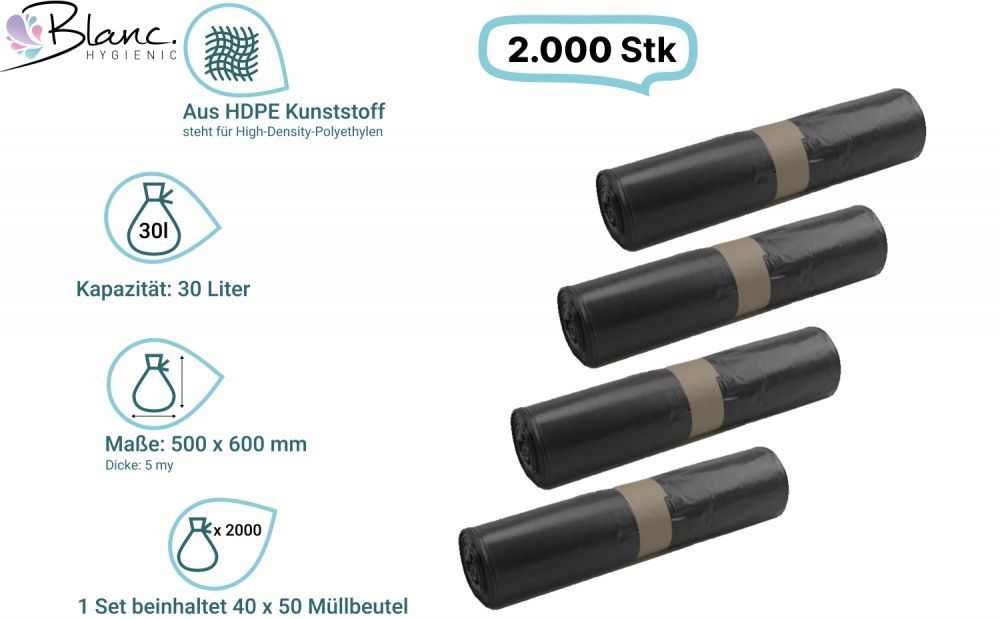Müllbeutel hohe Qualität 30 Liter, grau, 5my, 2.000 Beutel je SET