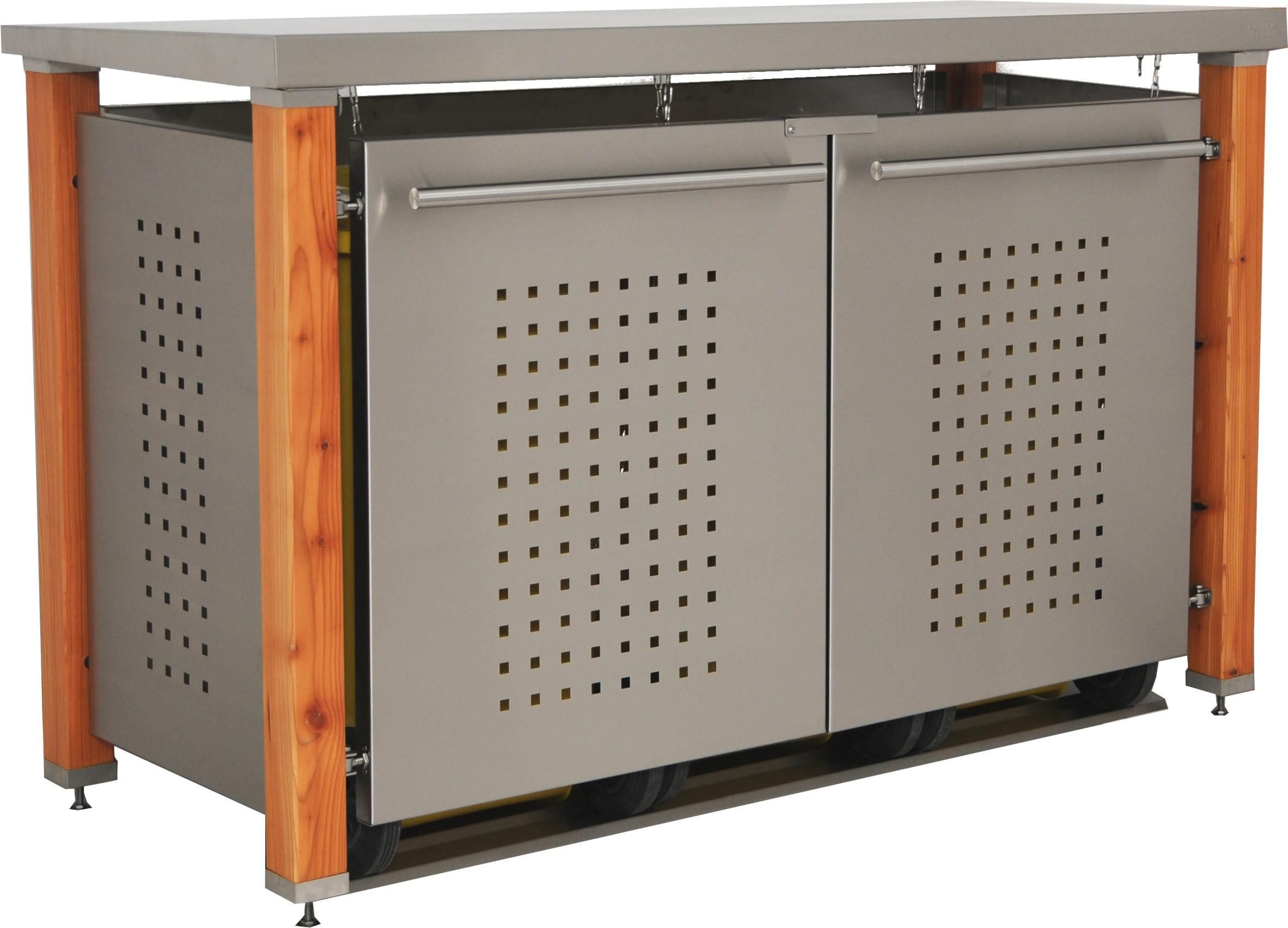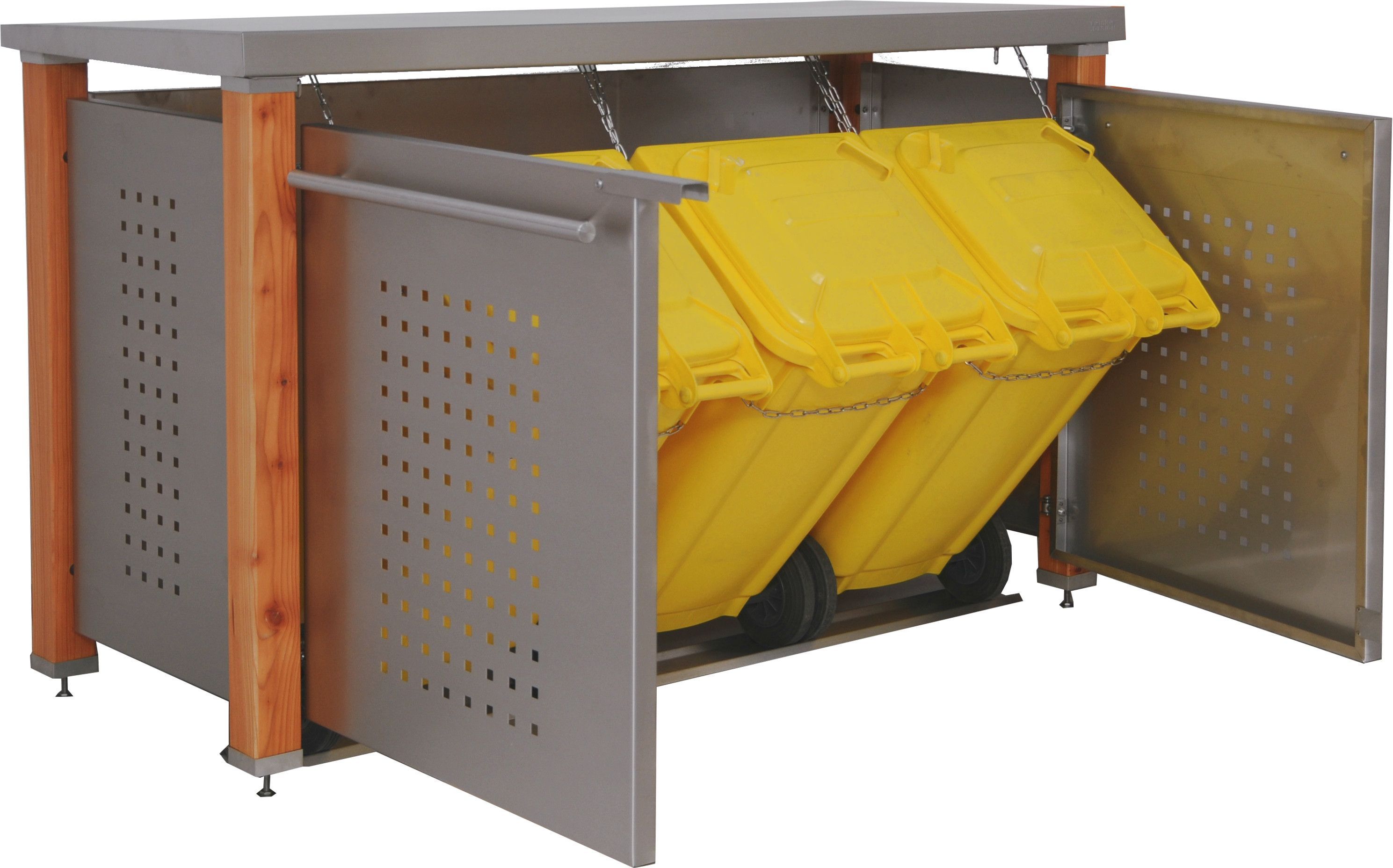 Müllbox Typ-HD, 3x 240l, Türfarbe Edelstahl Pultdach - F-Design