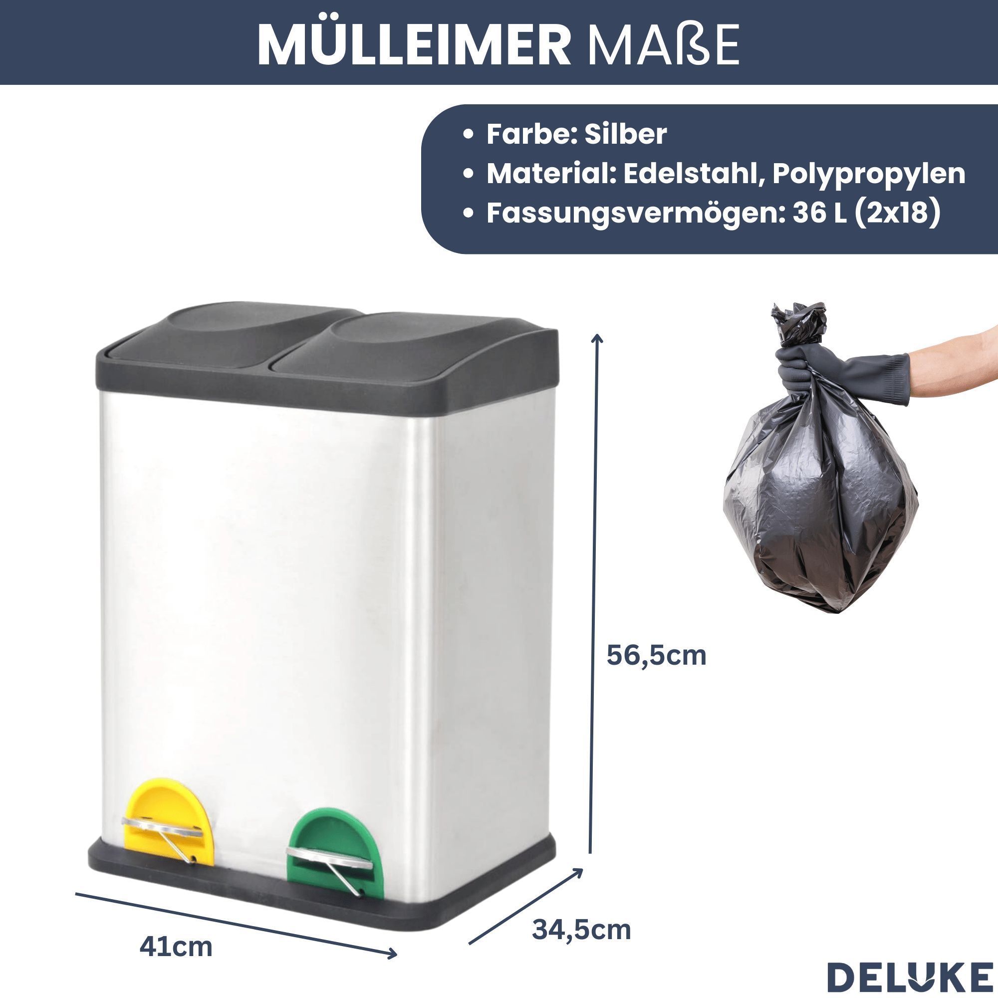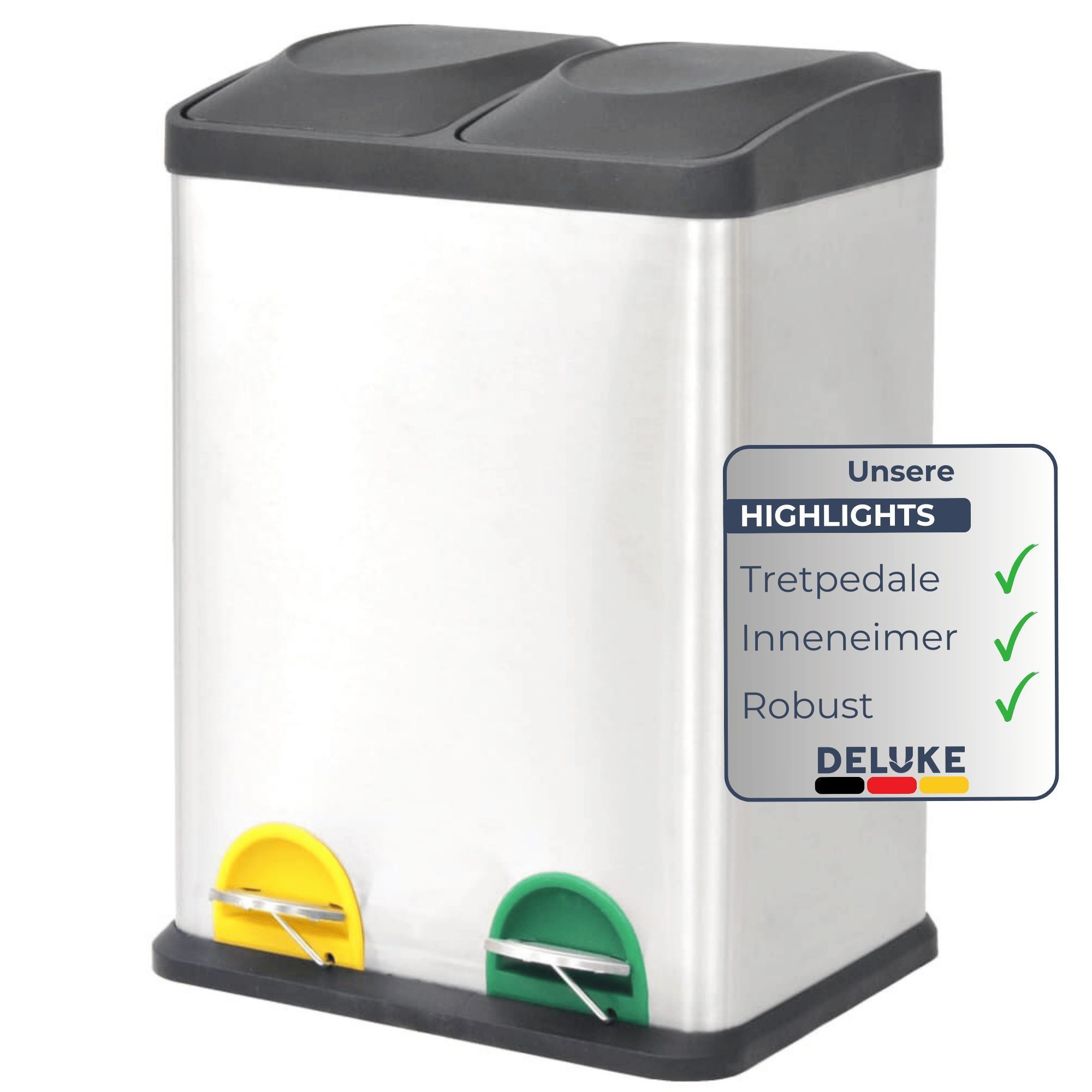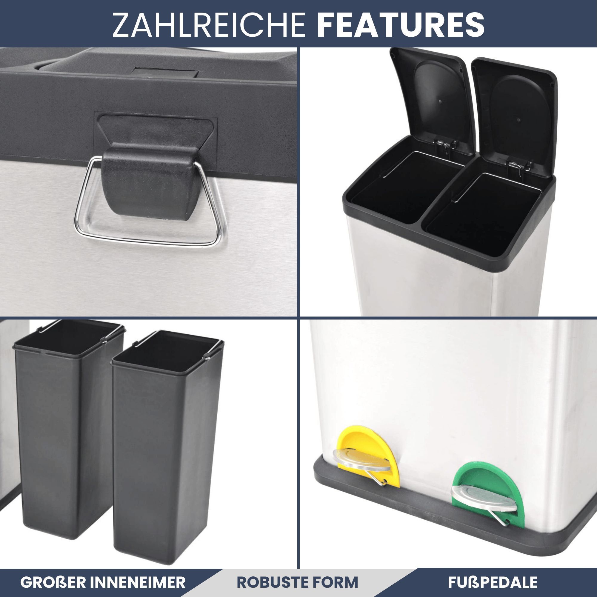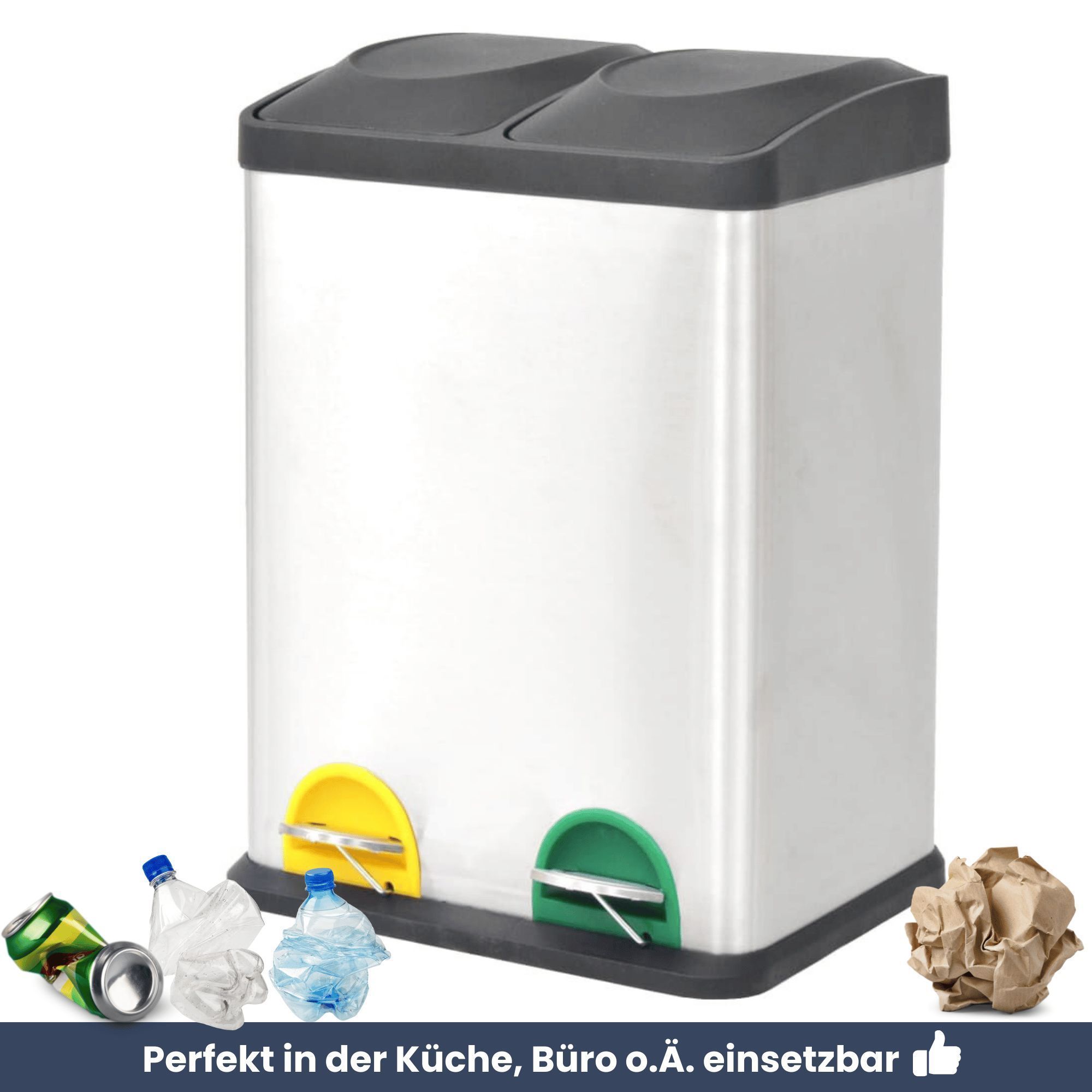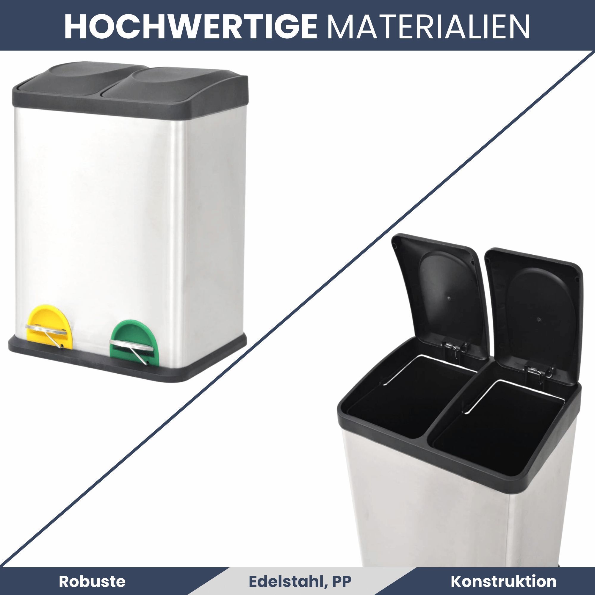 Mülleimer 2 Fächer Edelstahl 2x 18L Inneneimer herausnehmbar Pedaleimer Tretmülleimer