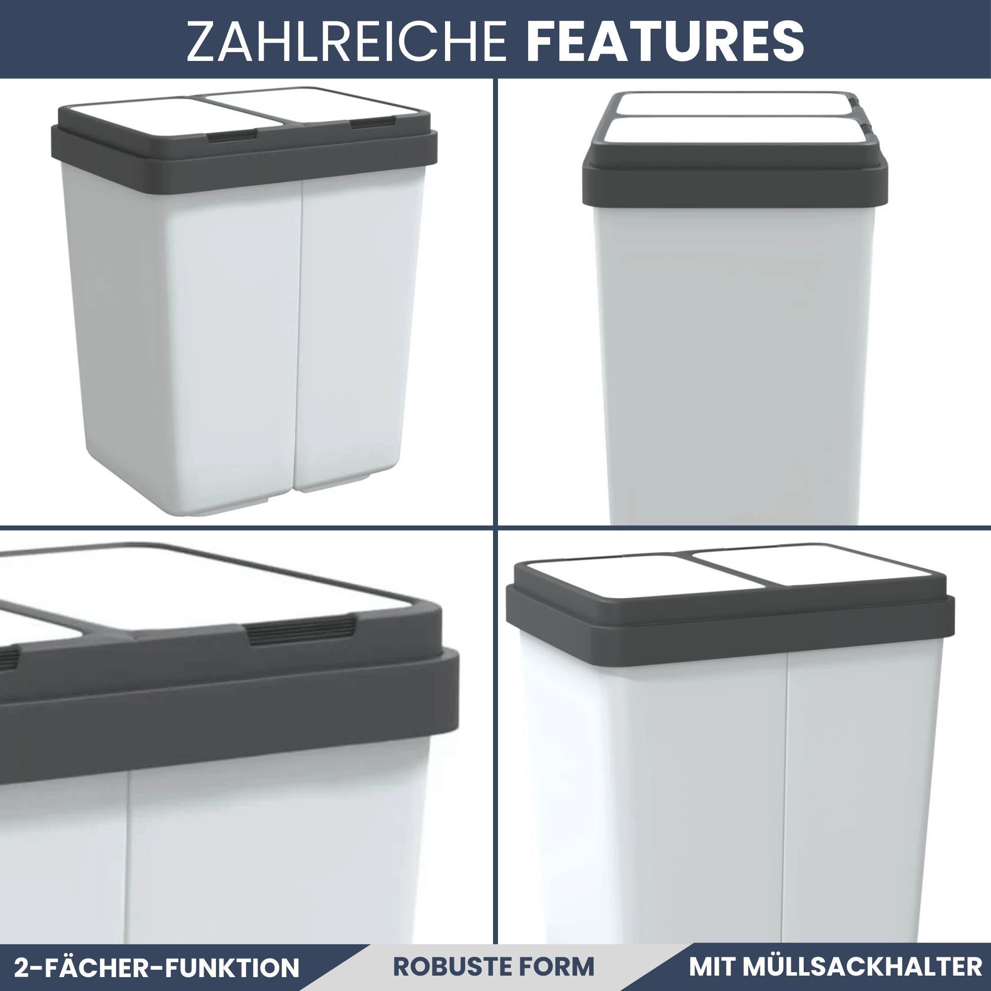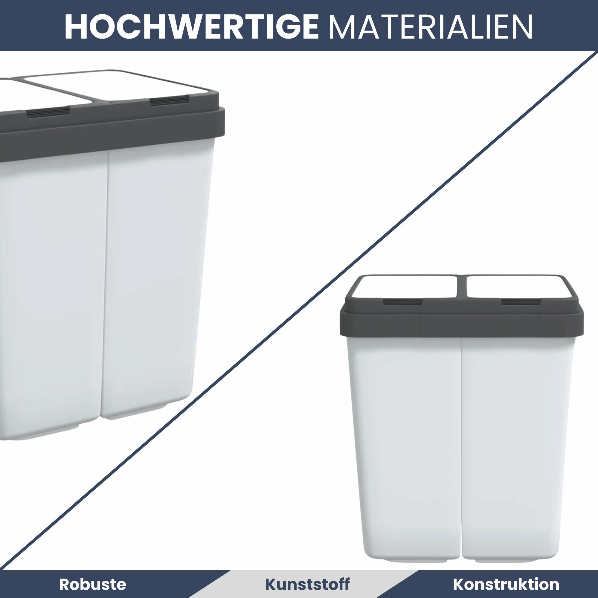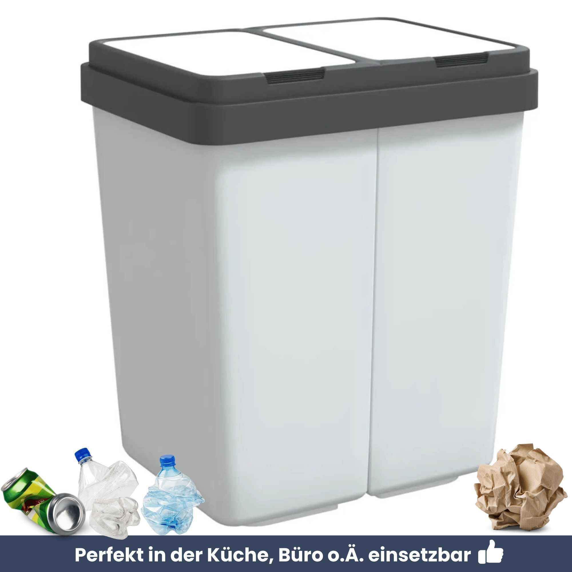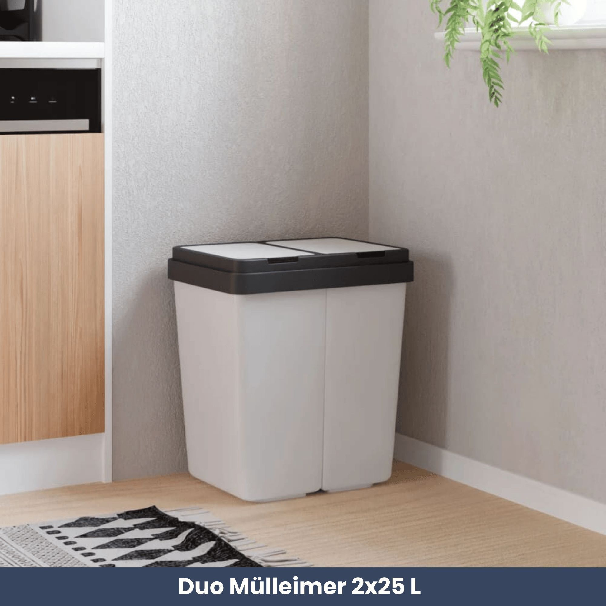 Mülleimer 2 Fächer Küche 2x25L Trenneimer Müllsackhalter Abfalleimer Deckel Büro