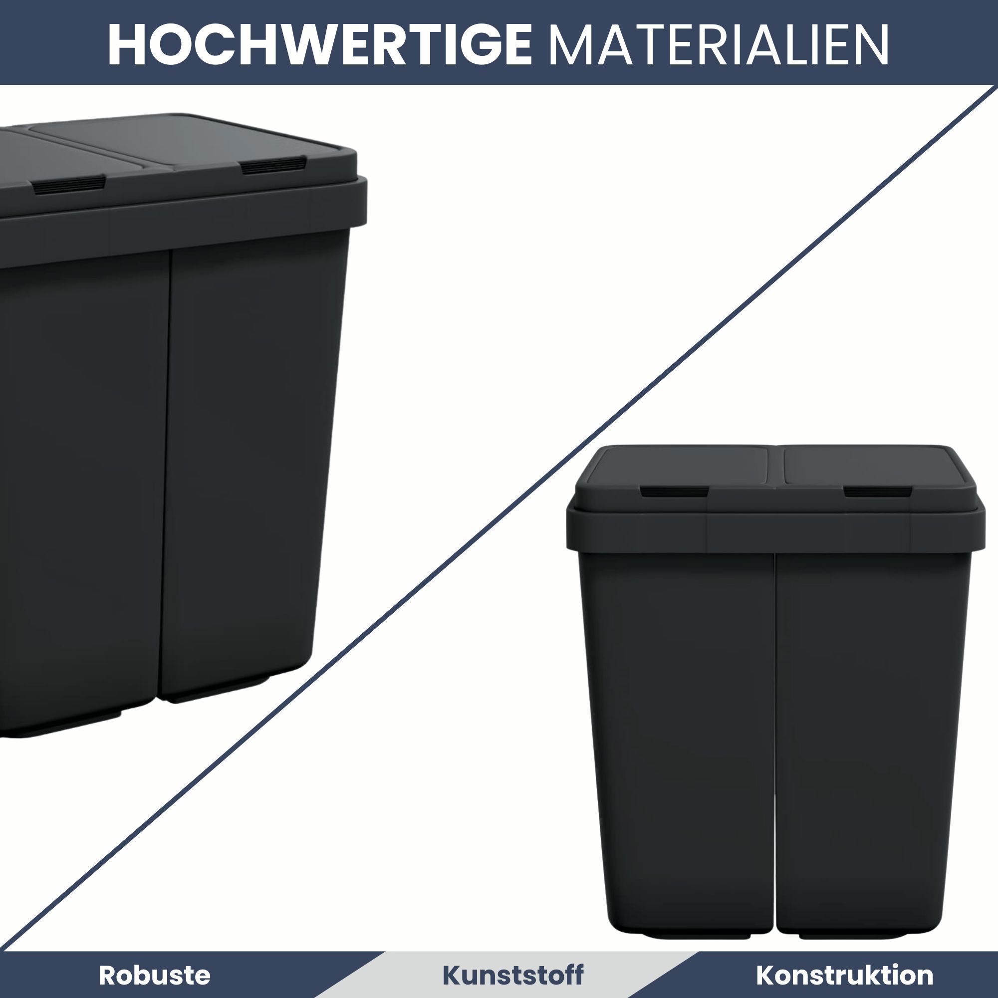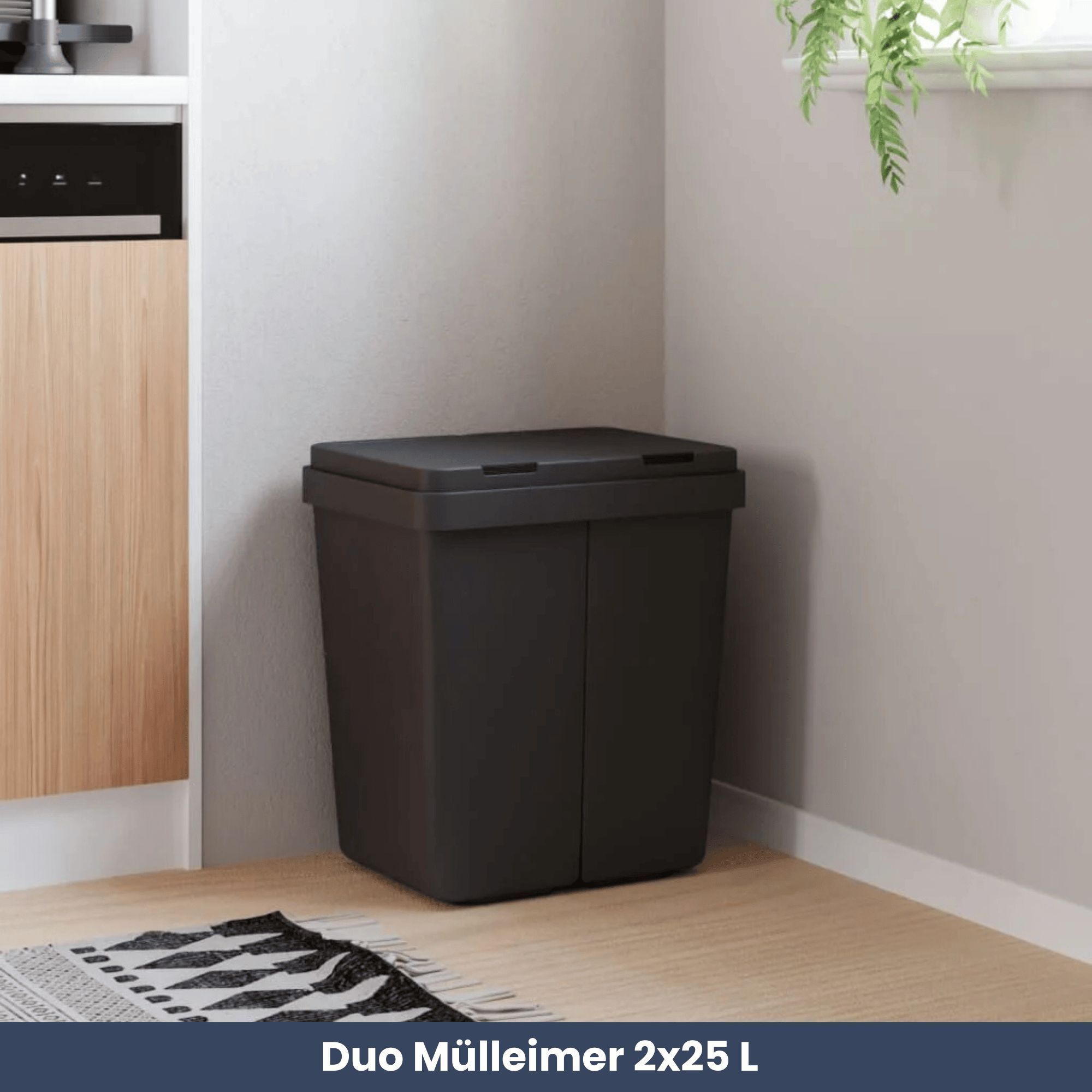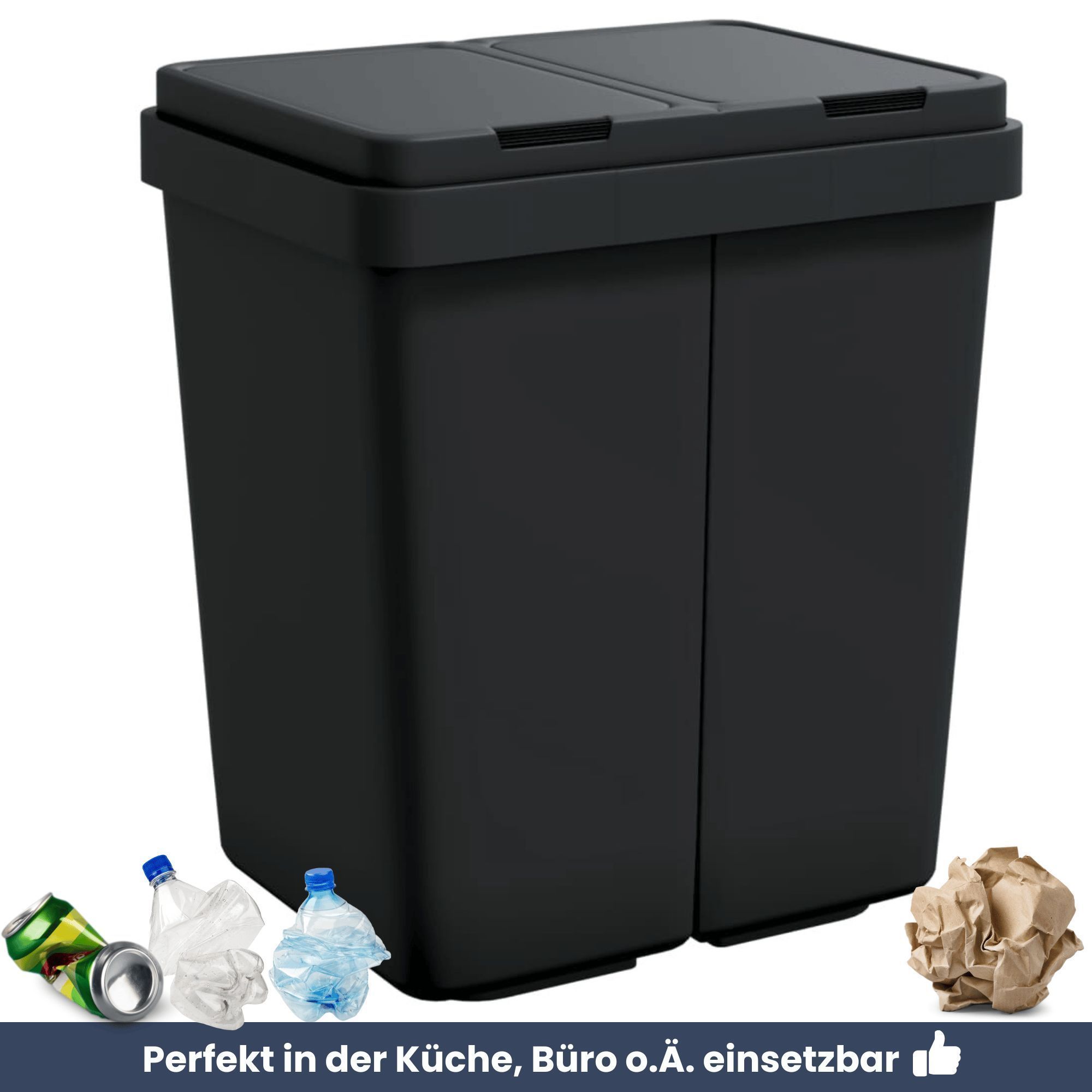 Mülleimer 2 Fächer Küche 2x25L Trenneimer Müllsackhalter Abfalleimer Deckel Büro