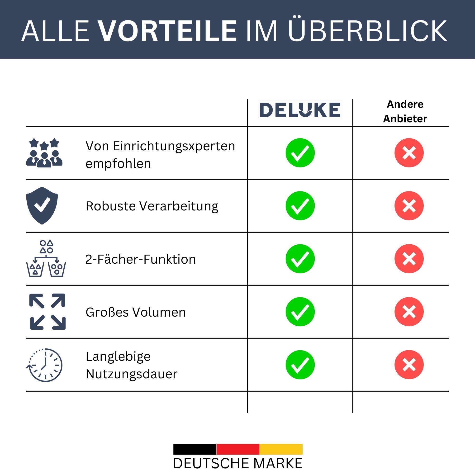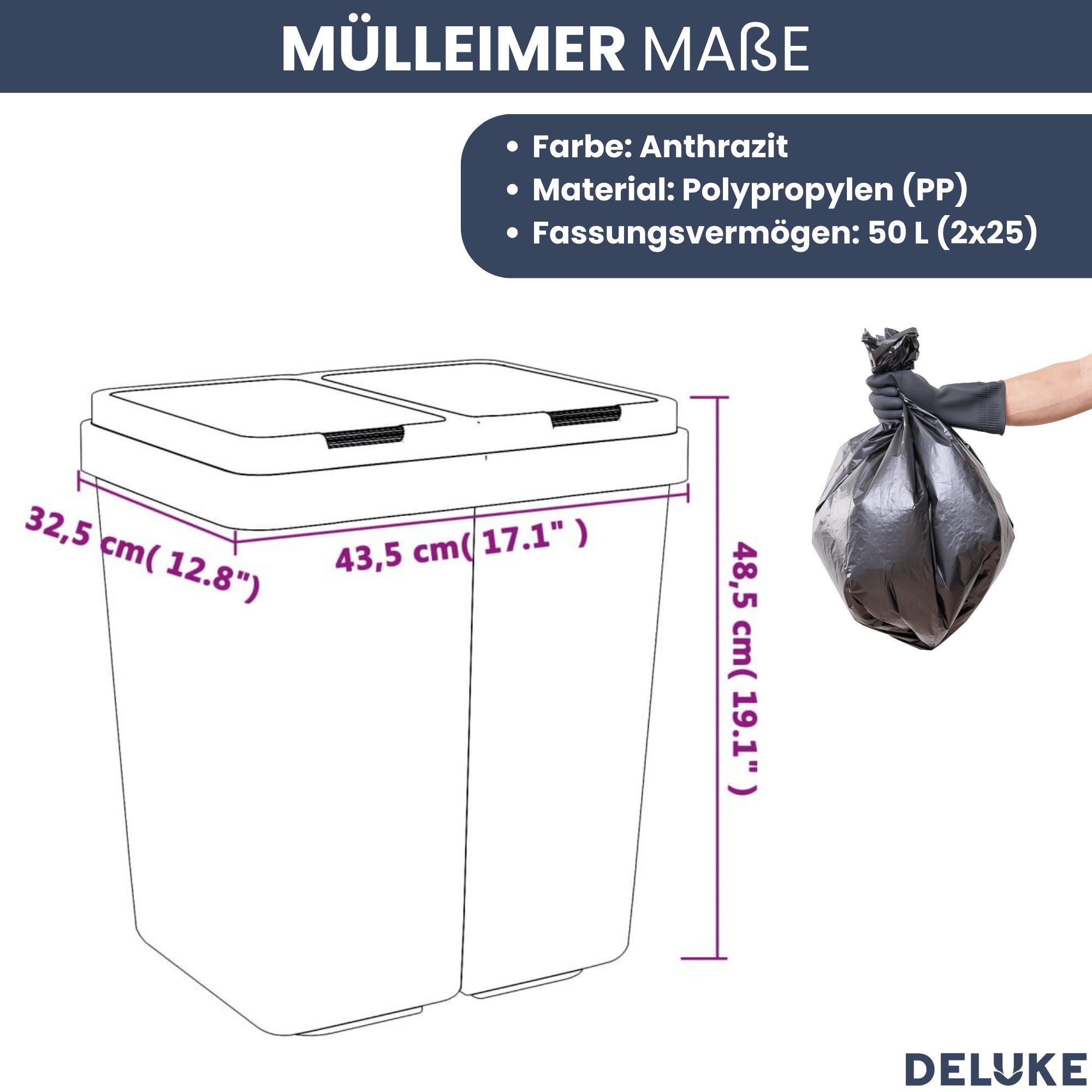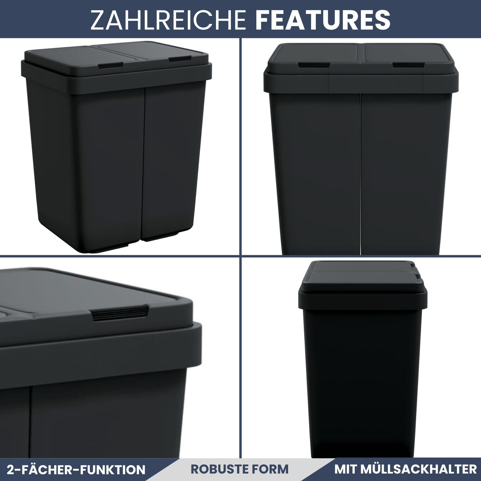 Mülleimer 2 Fächer Küche 2x25L Trenneimer Müllsackhalter Abfalleimer Deckel Büro