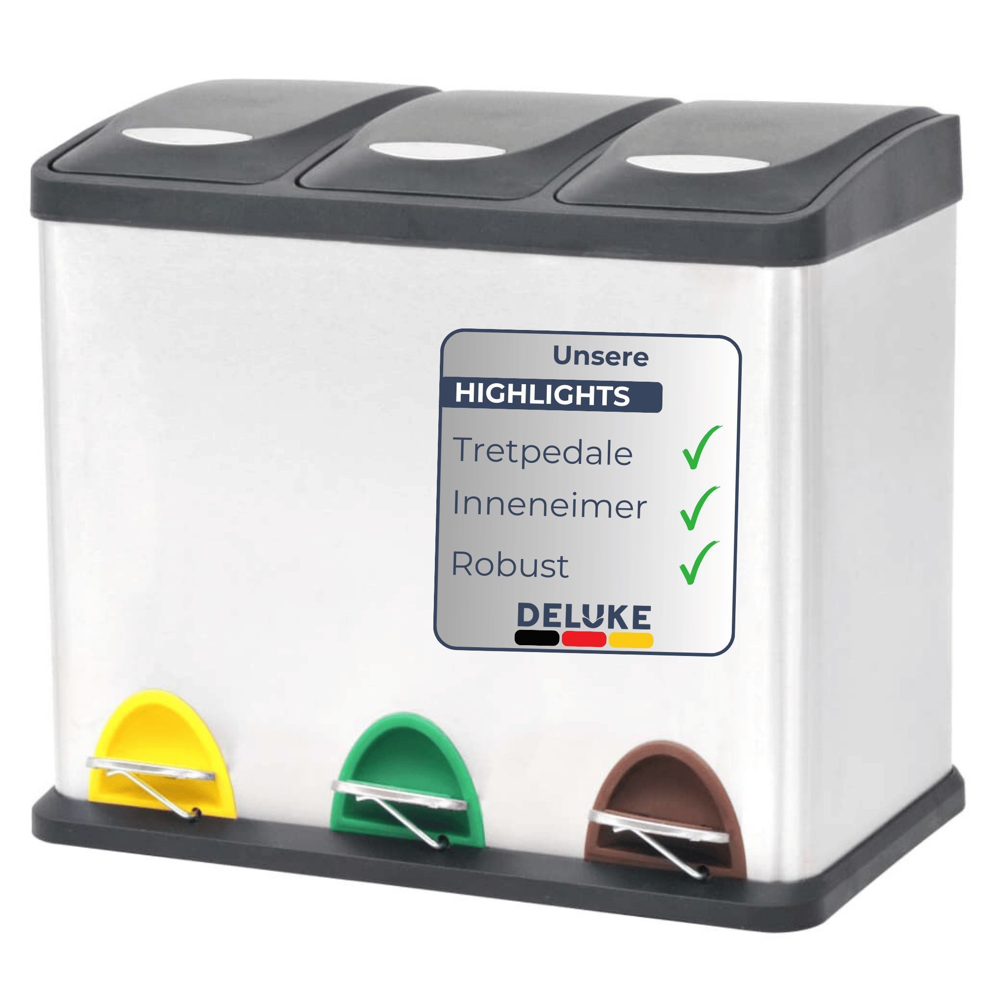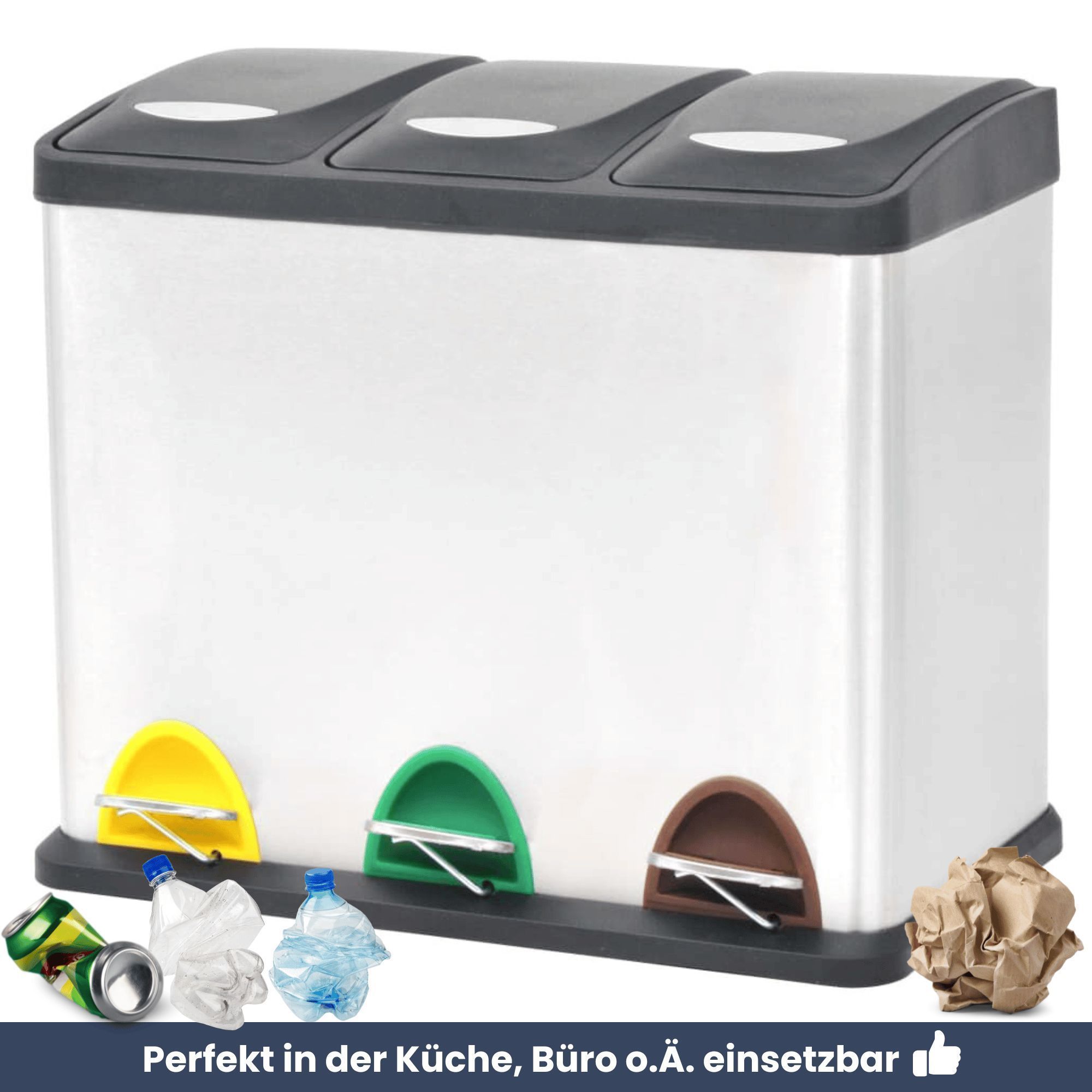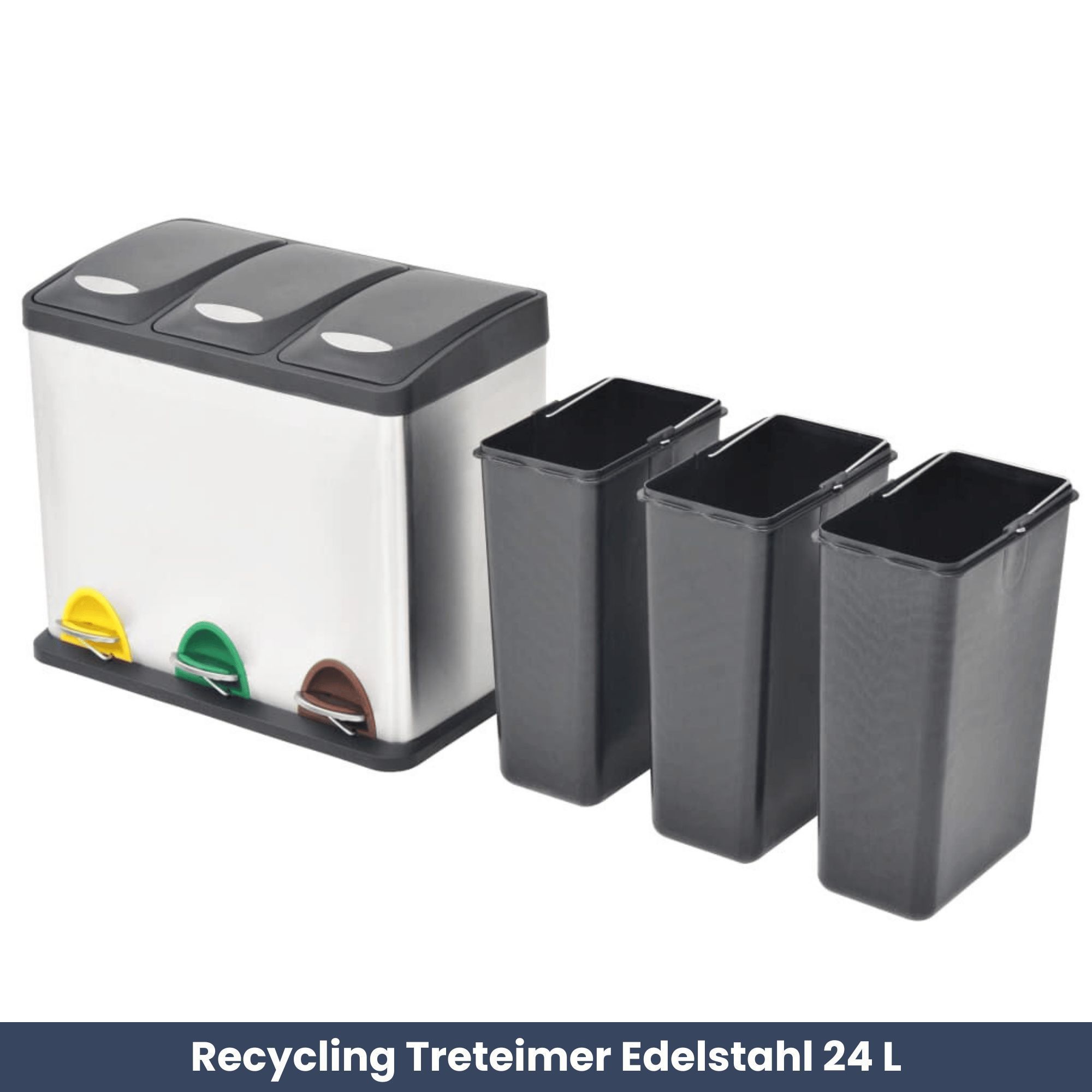 Mülleimer 3 Fächer Edelstahl 3x 8L Inneneimer herausnehmbar Pedaleimer Tretmülleimer