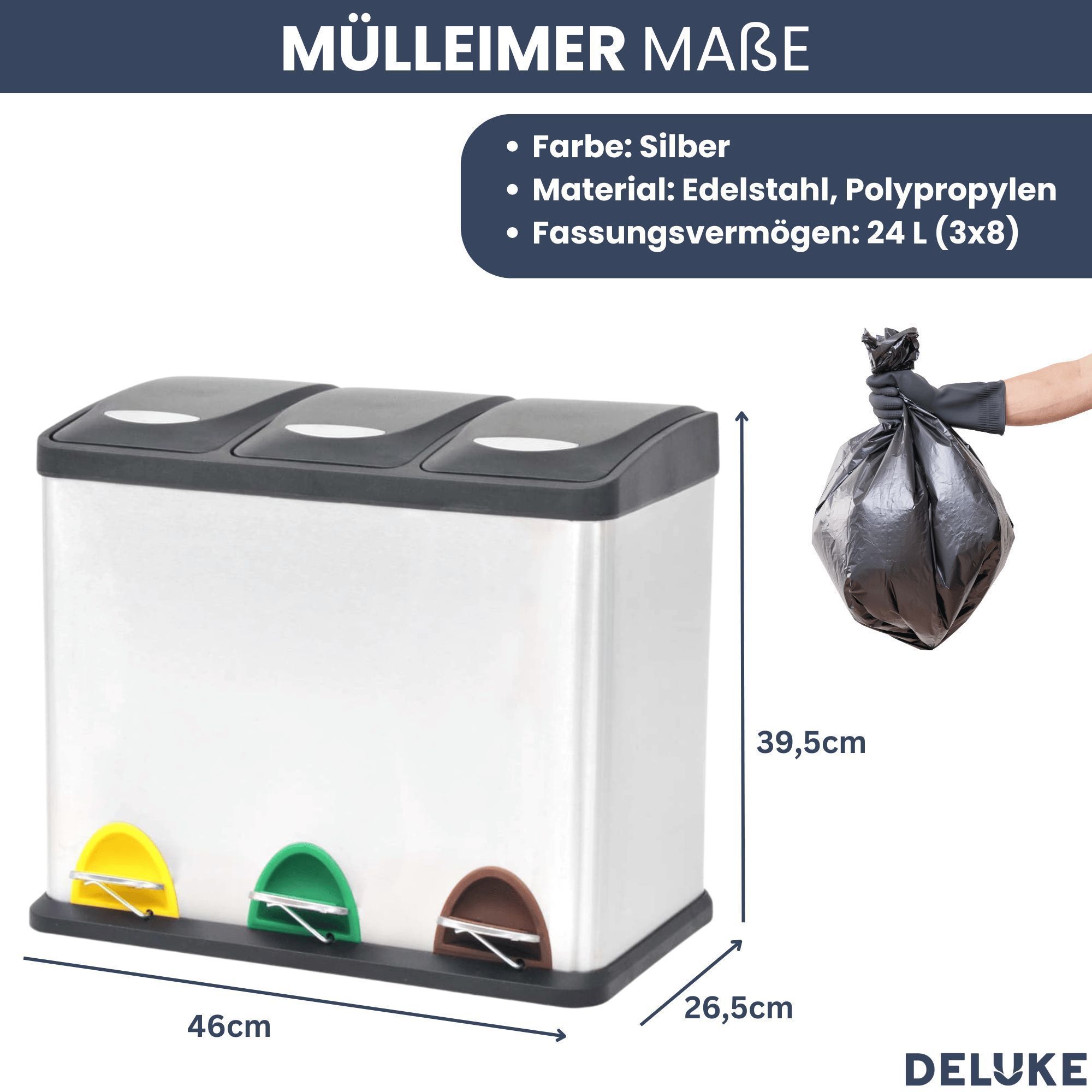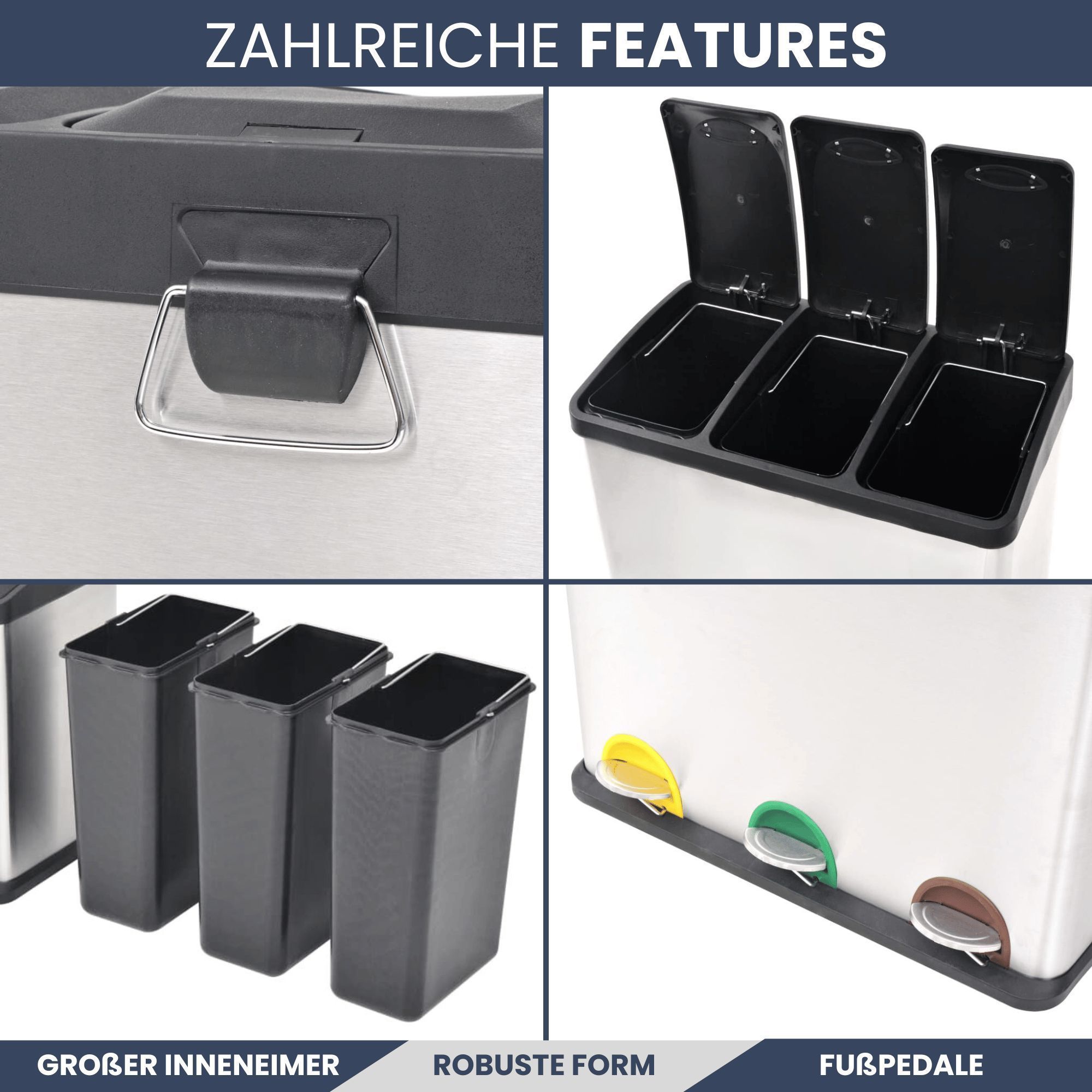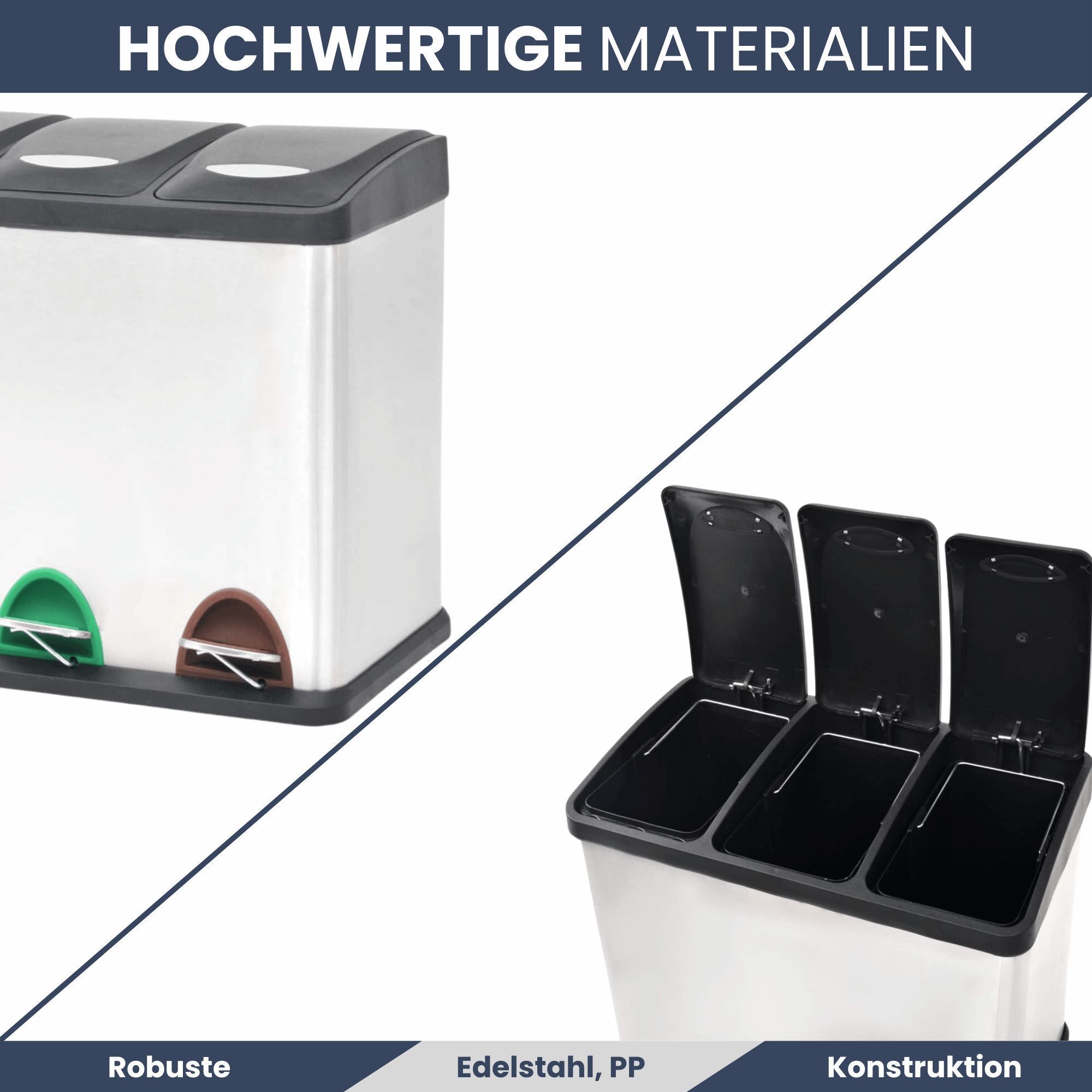 Mülleimer 3 Fächer Edelstahl 3x 8L Inneneimer herausnehmbar Pedaleimer Tretmülleimer