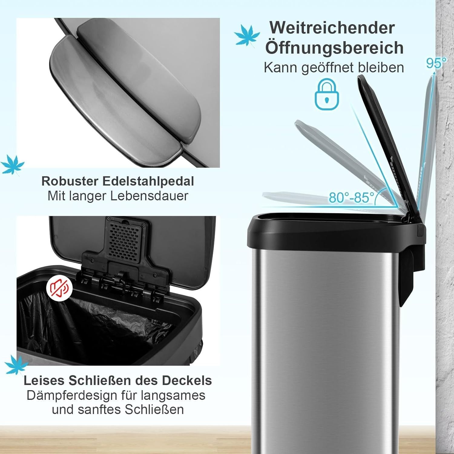 Mülleimer Küche, 50L Abfalleimer, Tretmülleimer mit sanft schließendem Deckel
