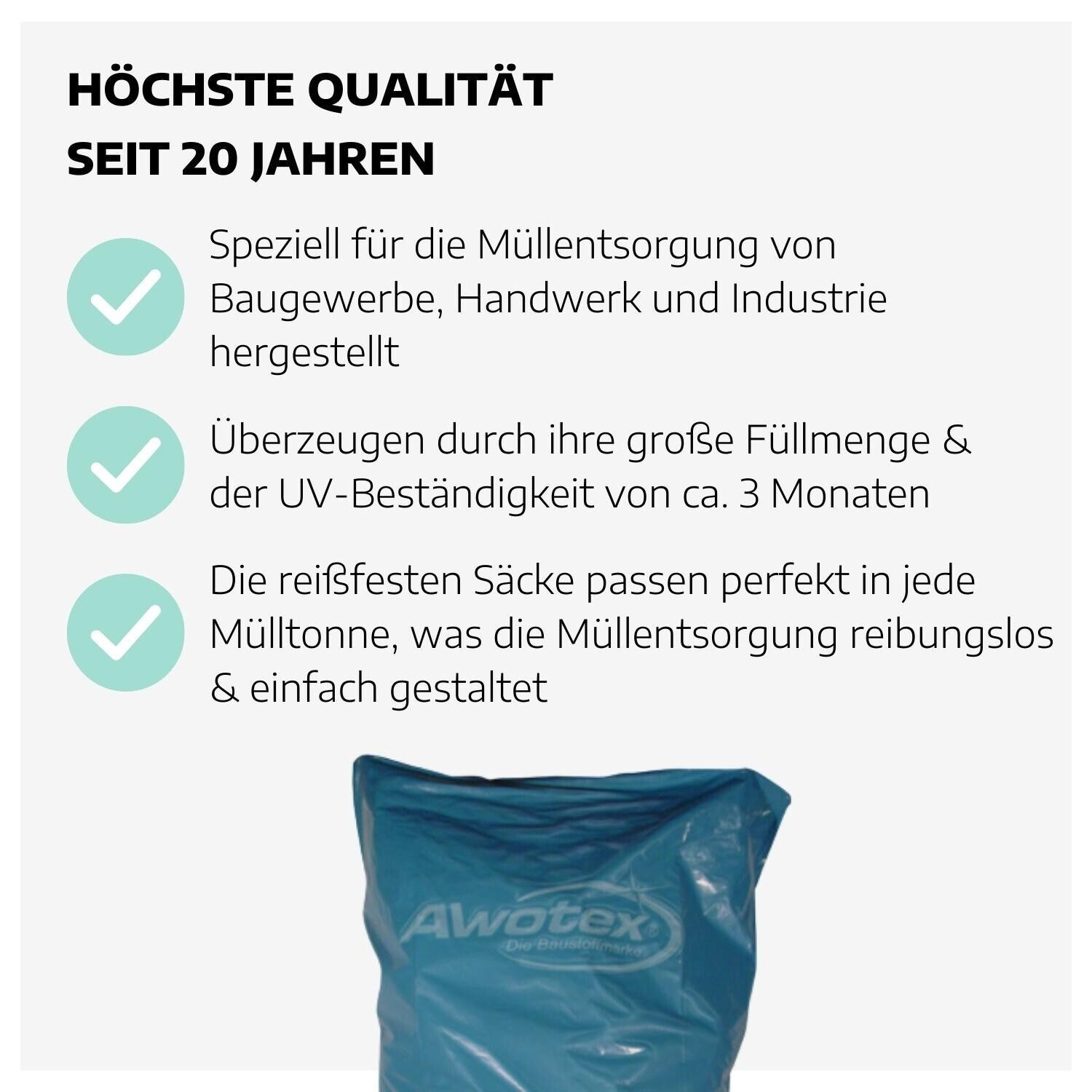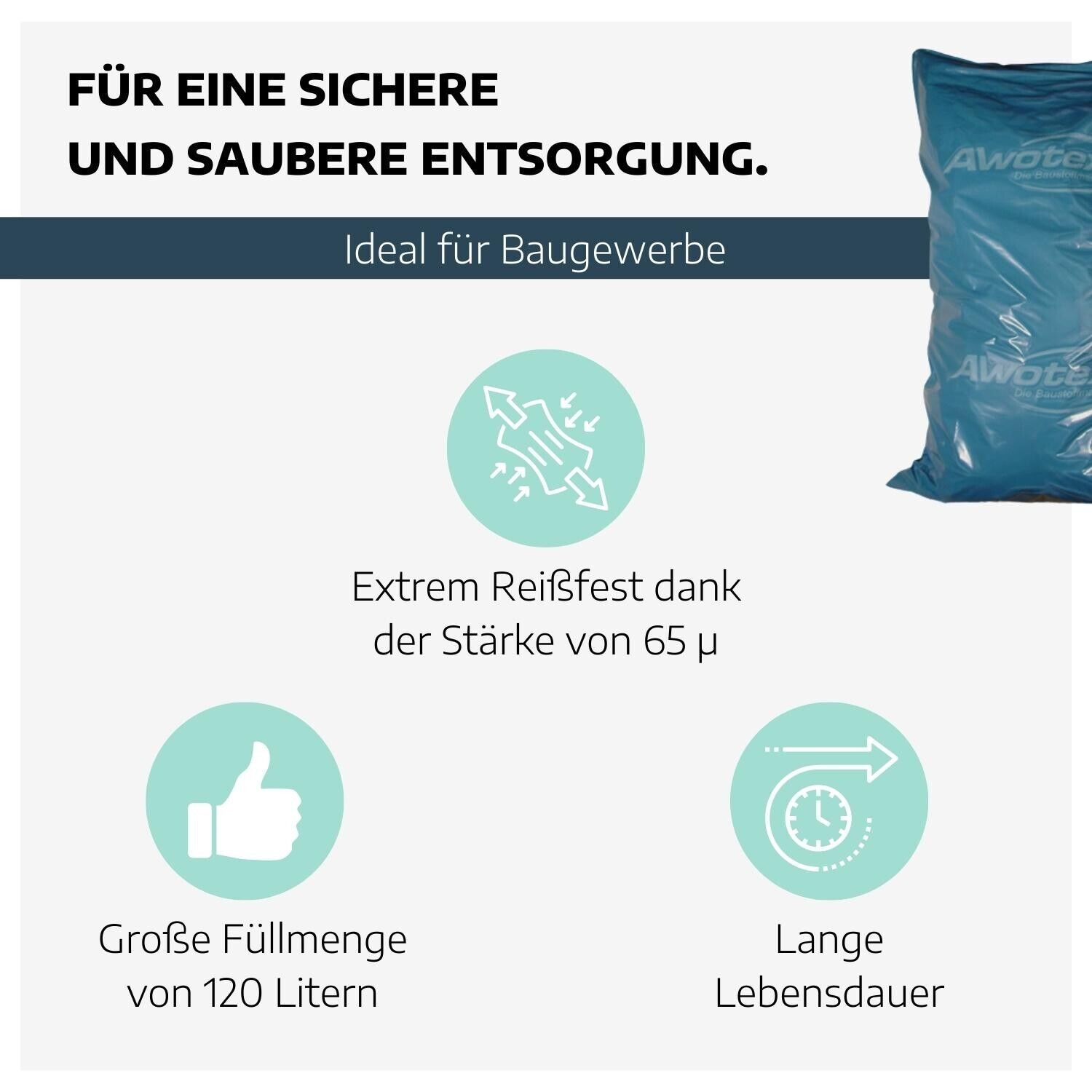 Diese praktischen Müllsäcke von Awotex haben ein Fassungsvermögen von 120 Litern und sind ideal für die Gebäudereinigung oder den privaten Gebrauch. Hergestellt in Deutschland, bieten sie eine zuverlässige und robuste Option zur Entsorgung von Abfällen. Jede der 12 Rollen enthält 25 Müllsäcke, die i