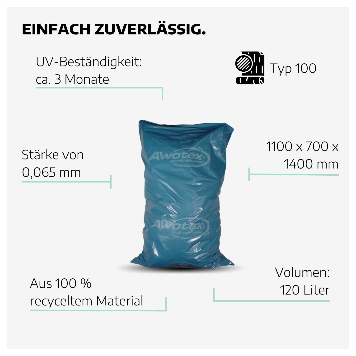 Müllsack Müllbeutel Mülltüte blau 120 Liter Typ 100 12 Rollen x 25 Stück