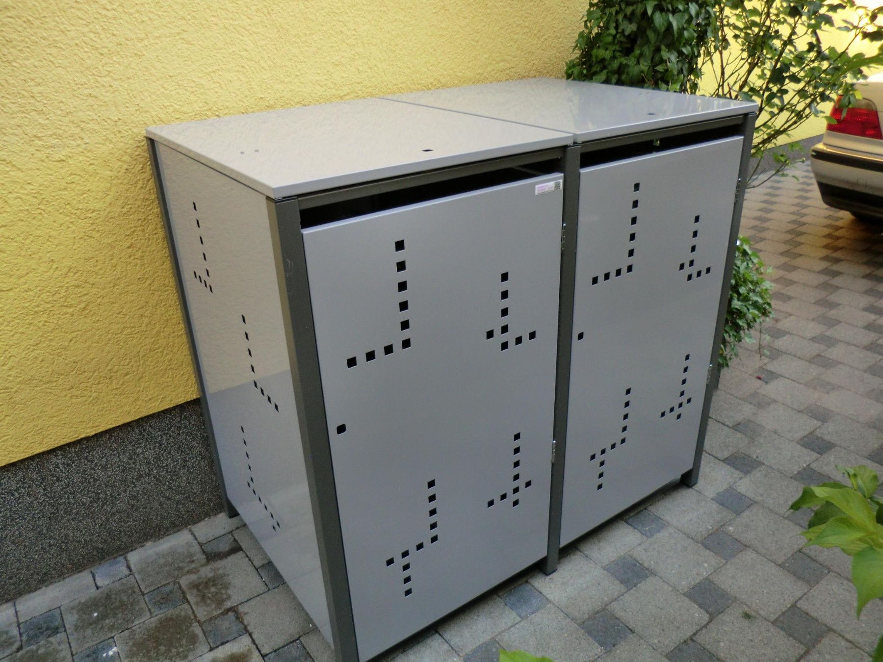 2er Mülltonnenbox aus Metall mit Klappdach - in Deutschland hergestellt