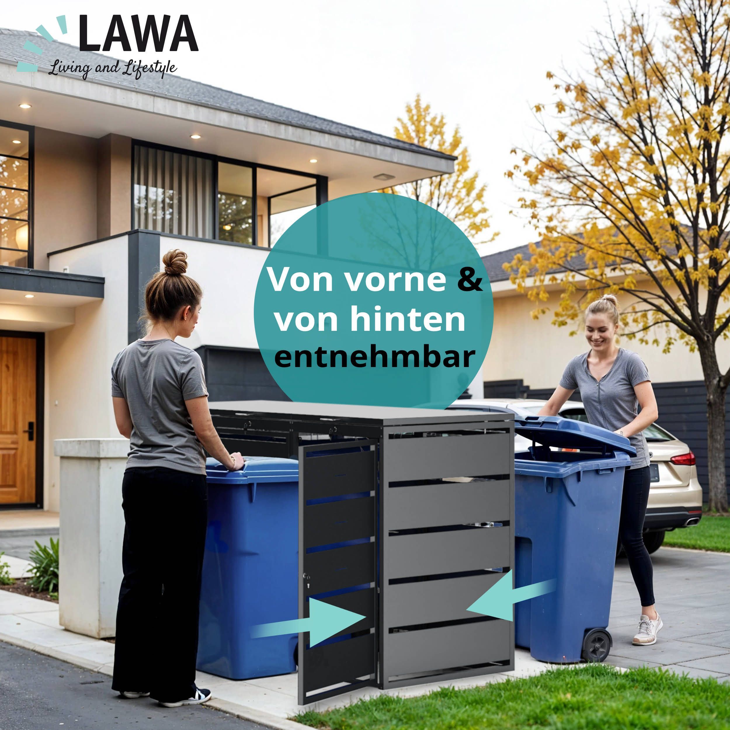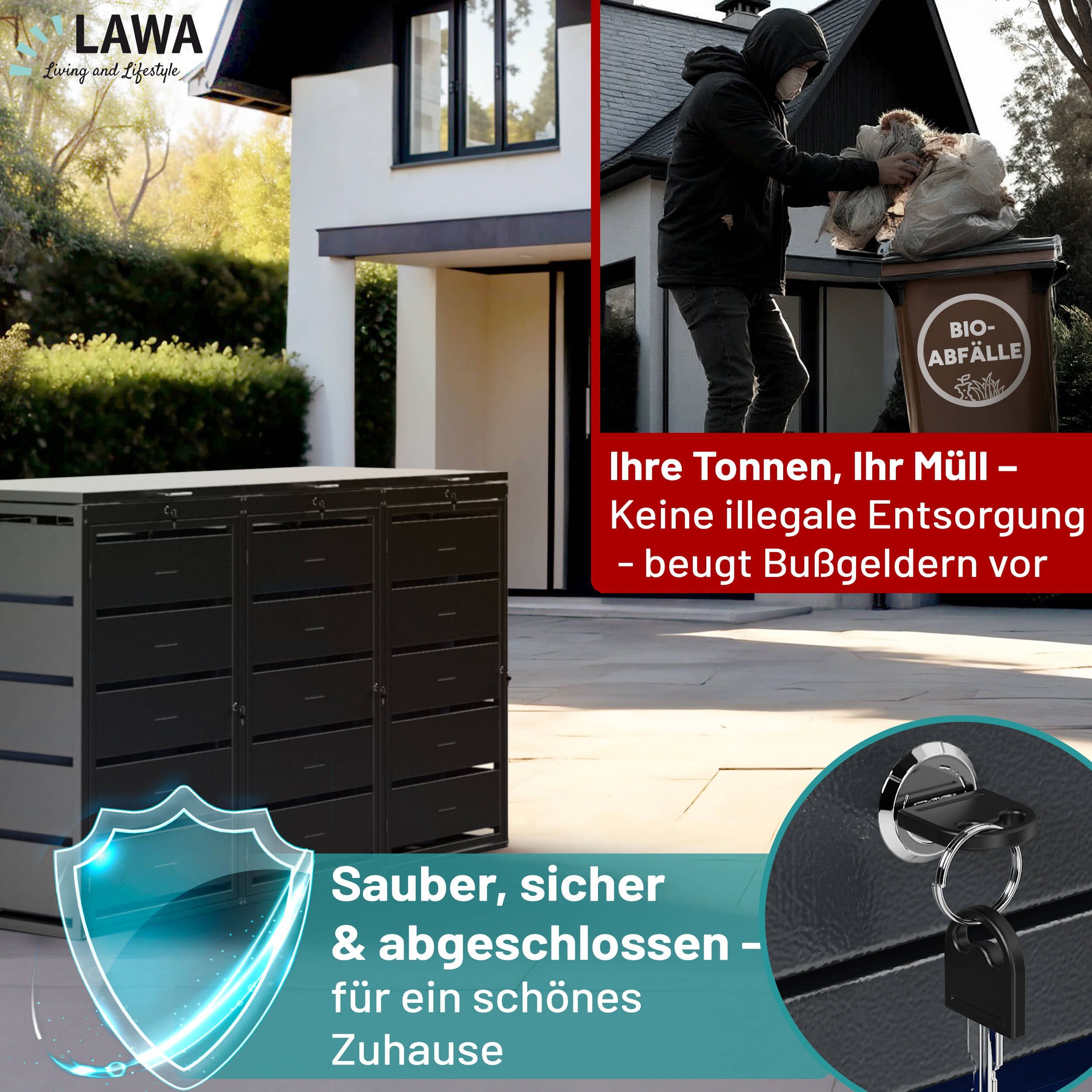 Mülltonnenbox 3x 240L Metall anthrazit abschließbar beidseitig zugänglich verzinkt MB