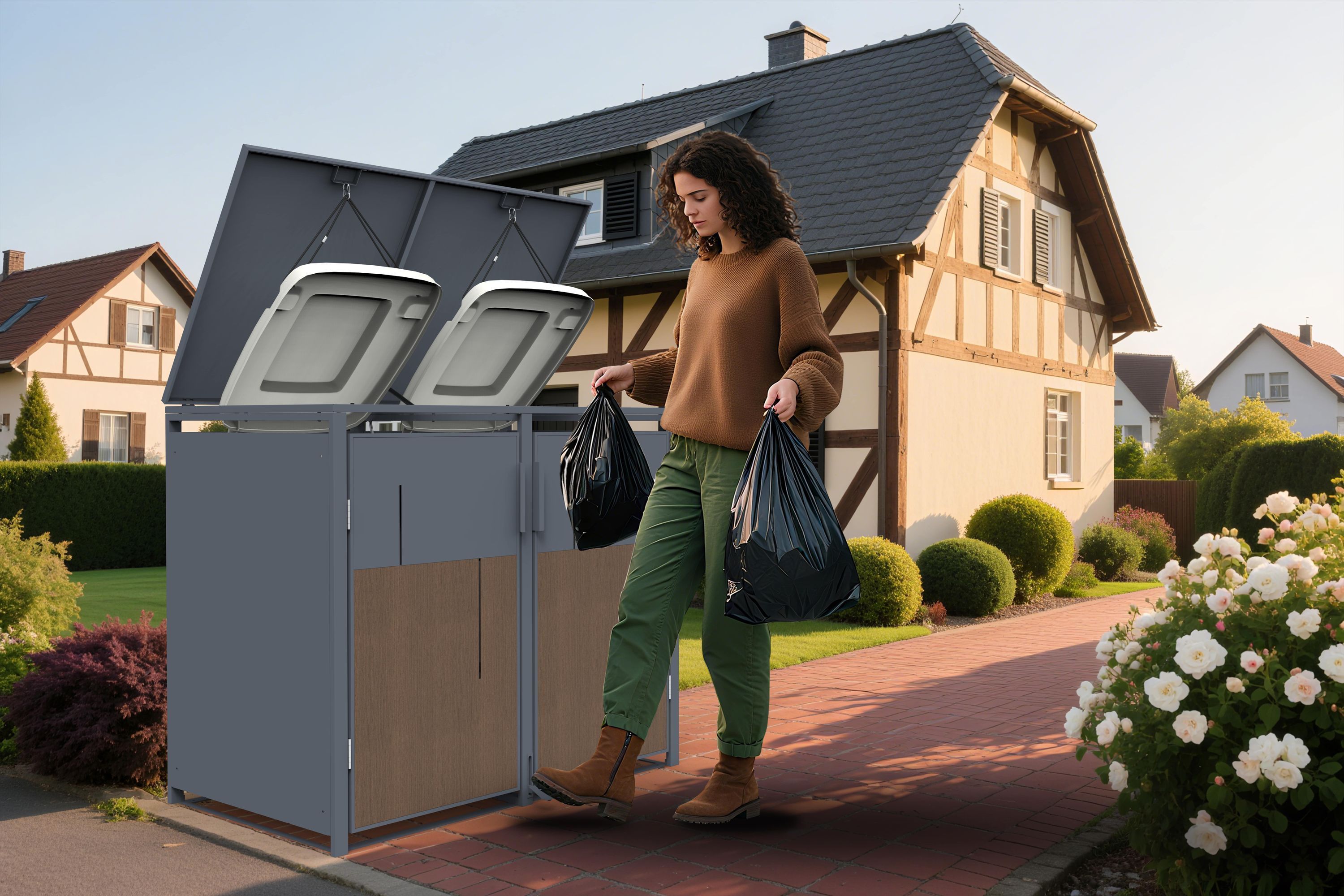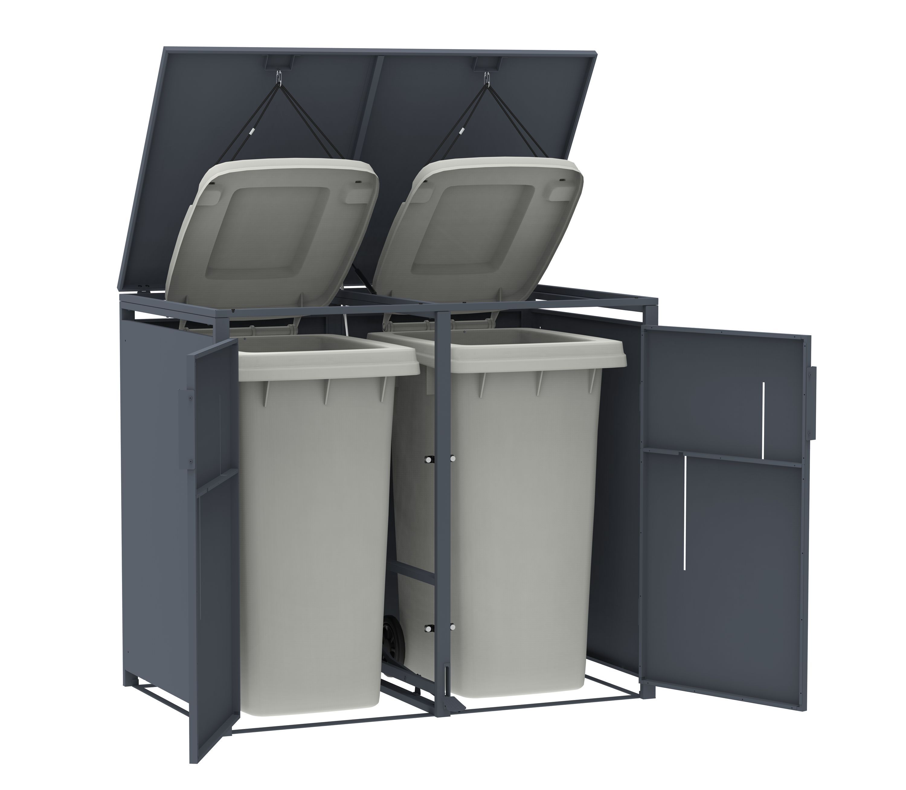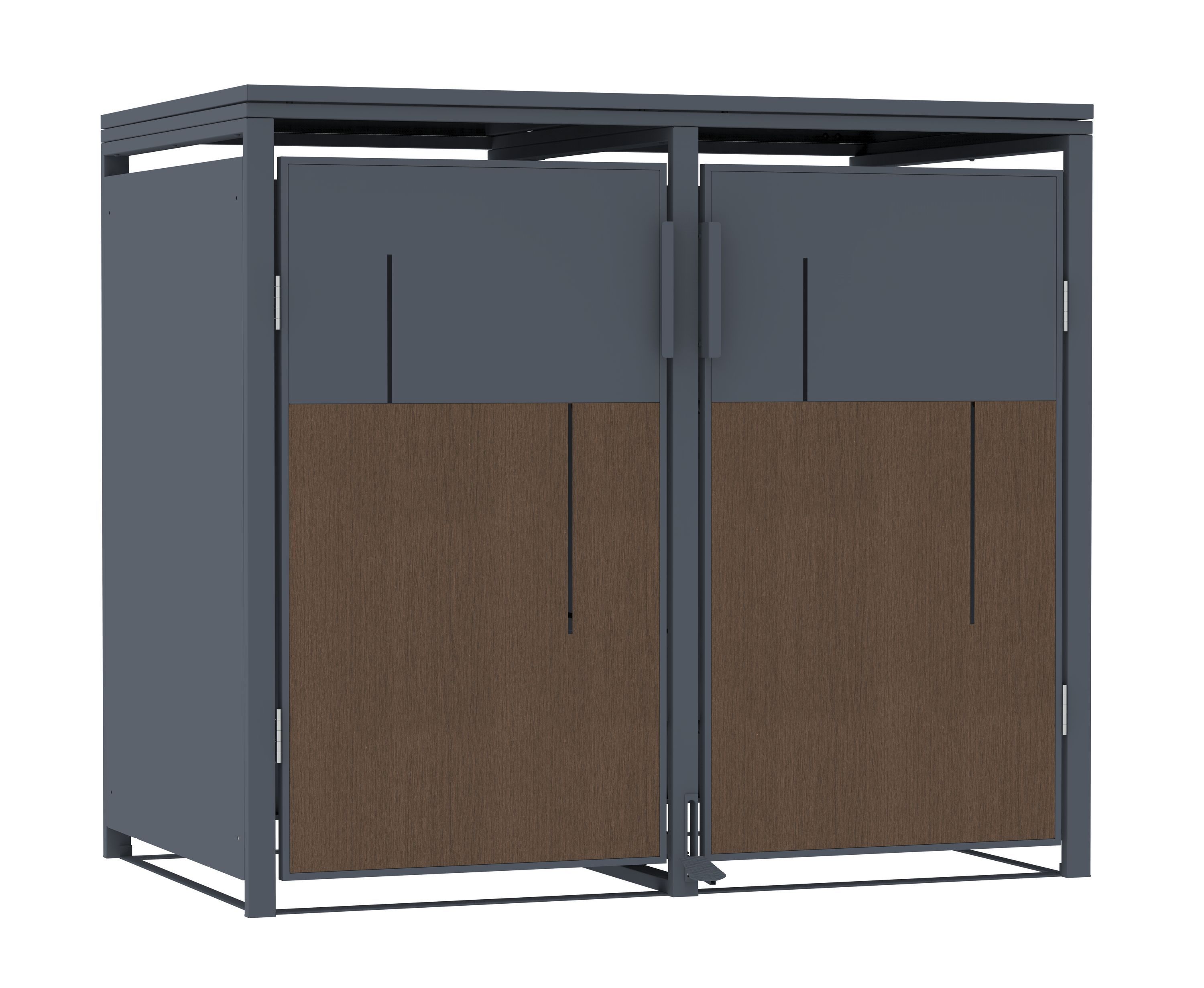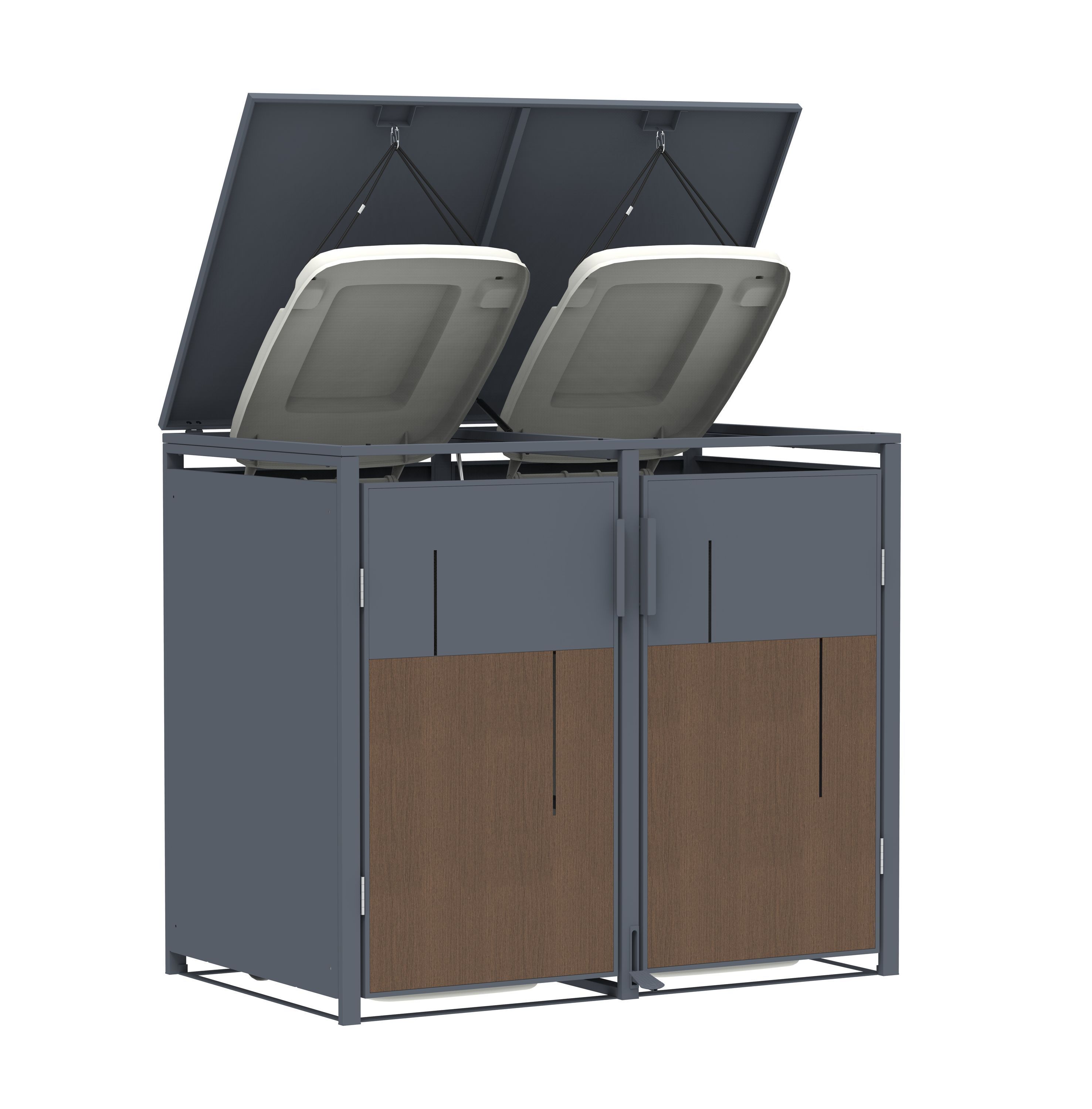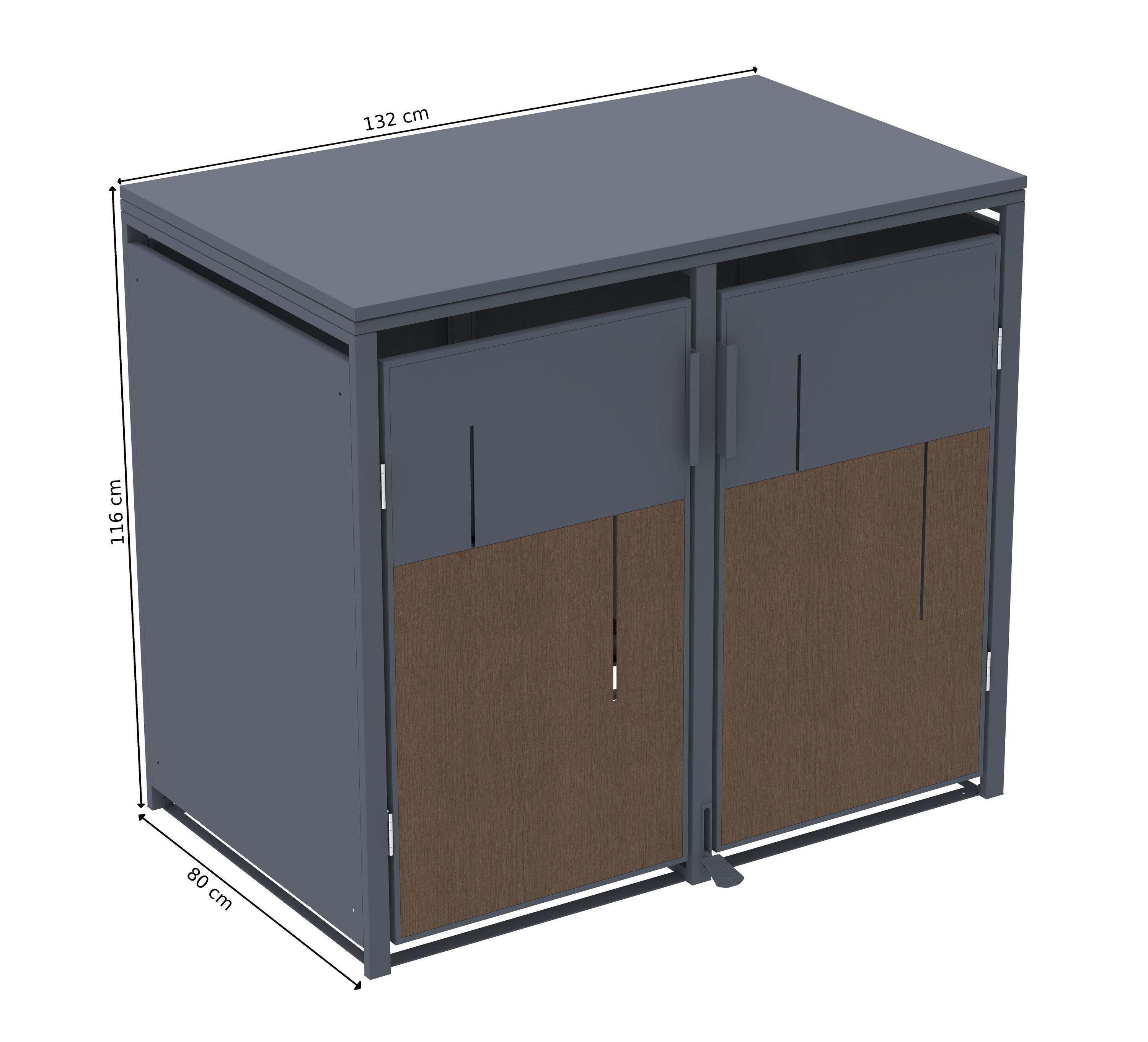 Mülltonnenbox Anthrazit mit Holzoptik für 2 Mülltonnen 240L 132x80x116cm Pedal