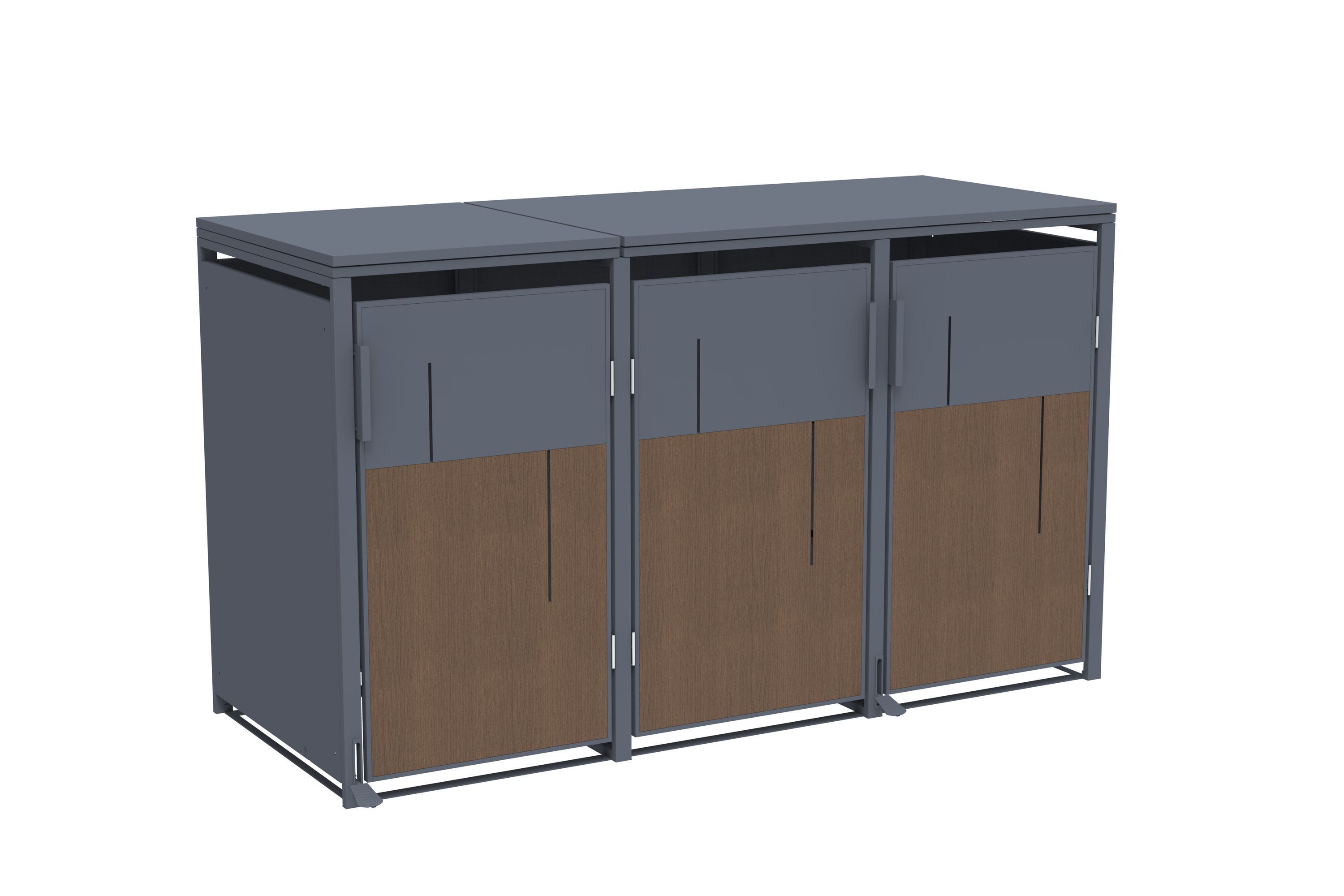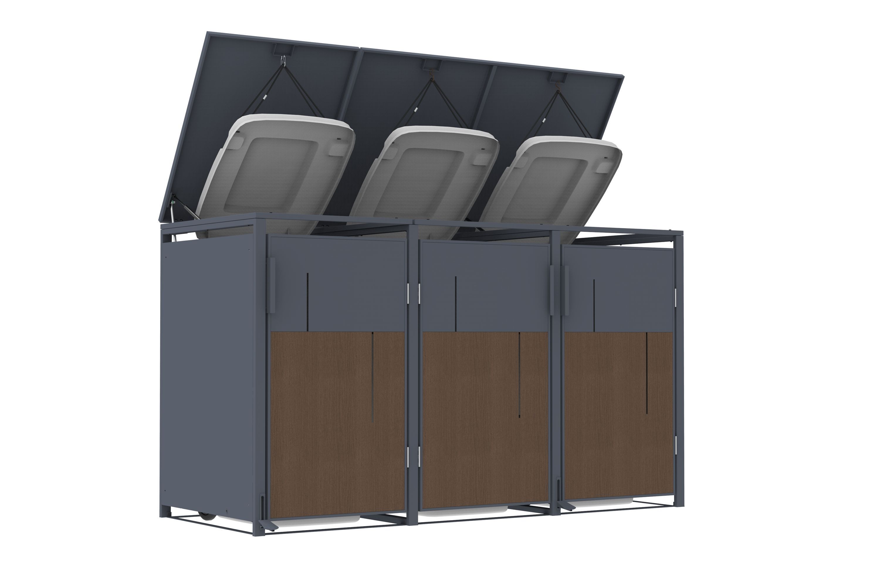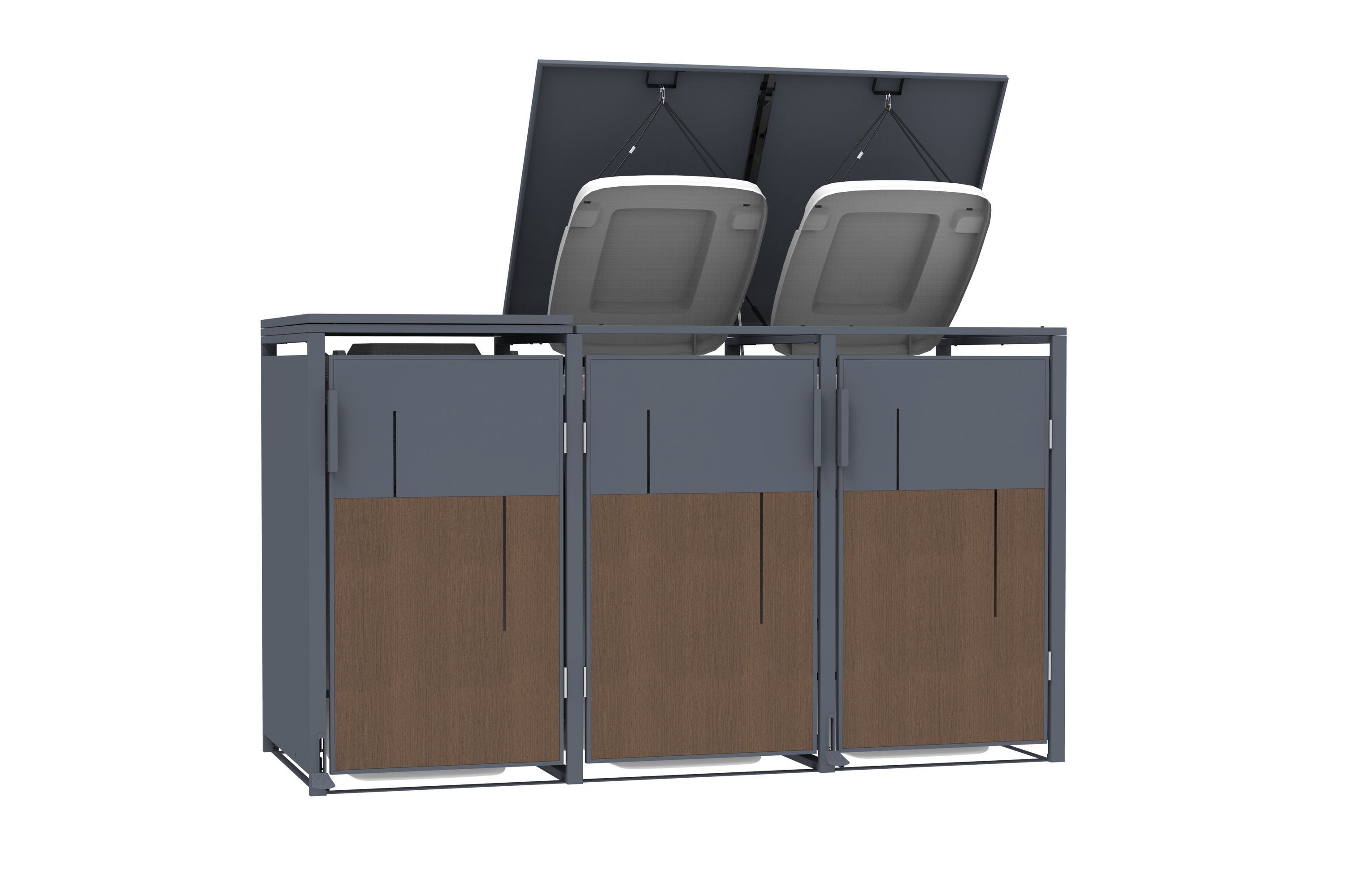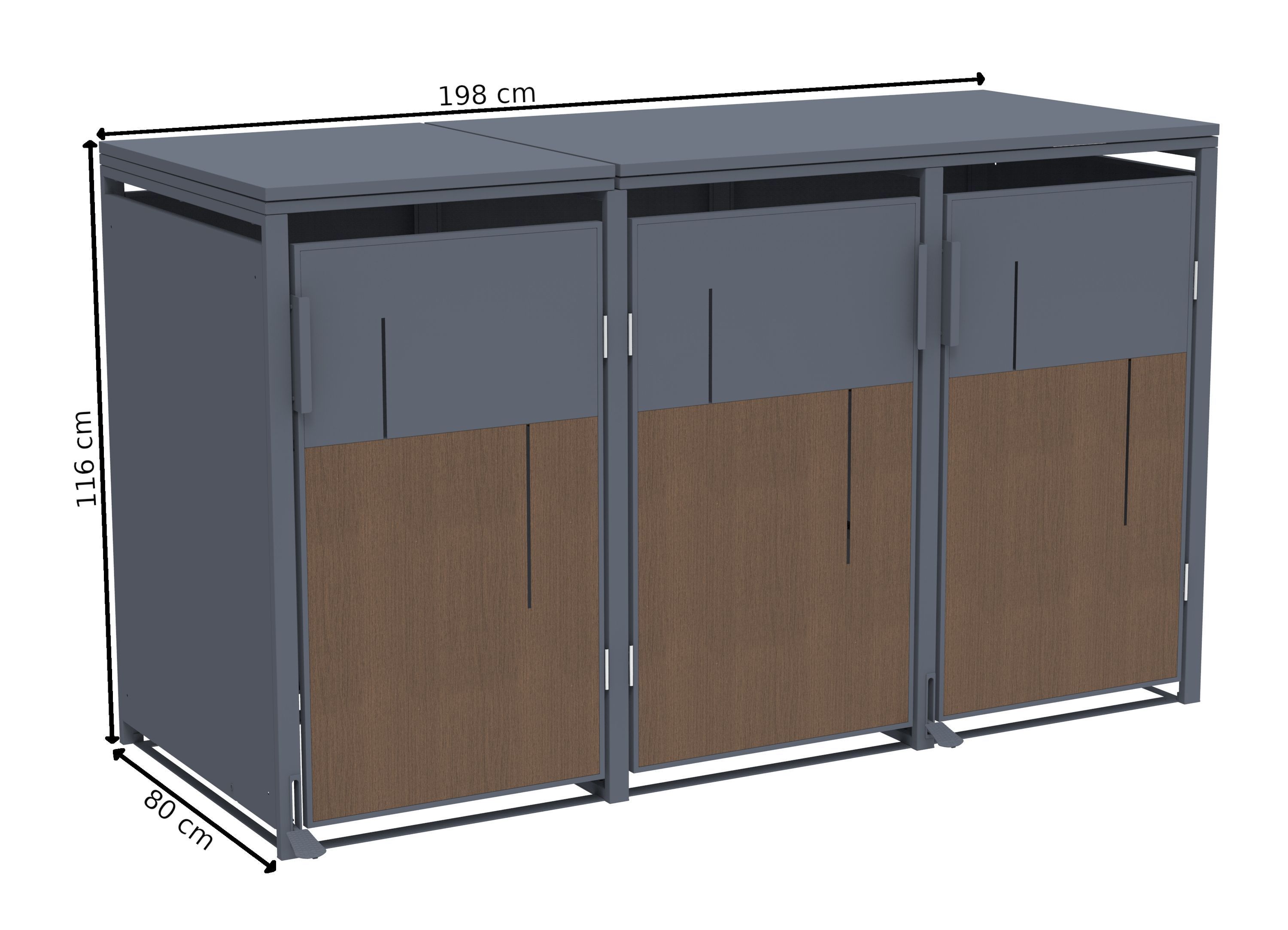Mülltonnenbox Anthrazit mit Holzoptik für 3 Mülltonnen 240L 198x80x116cm Pedal