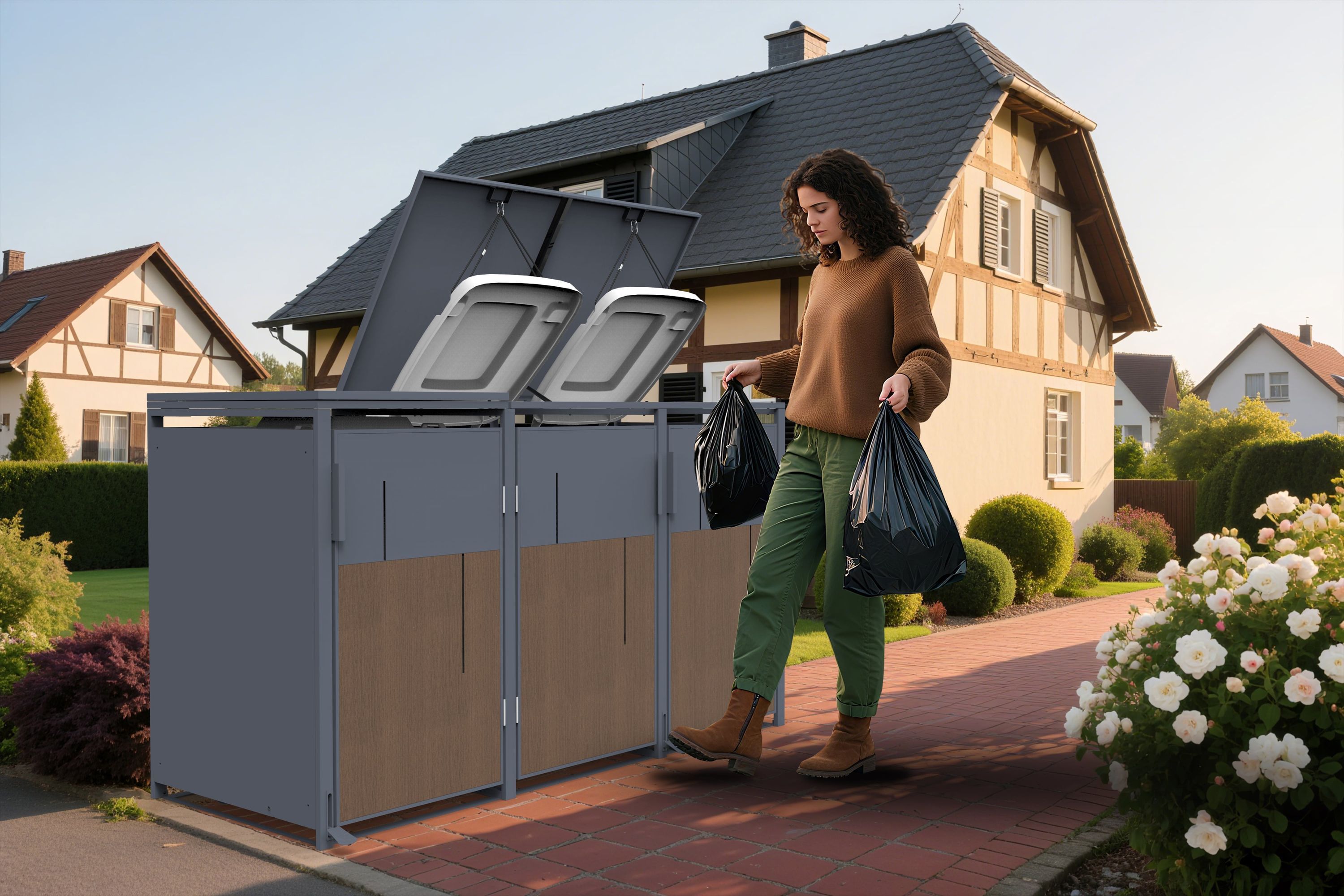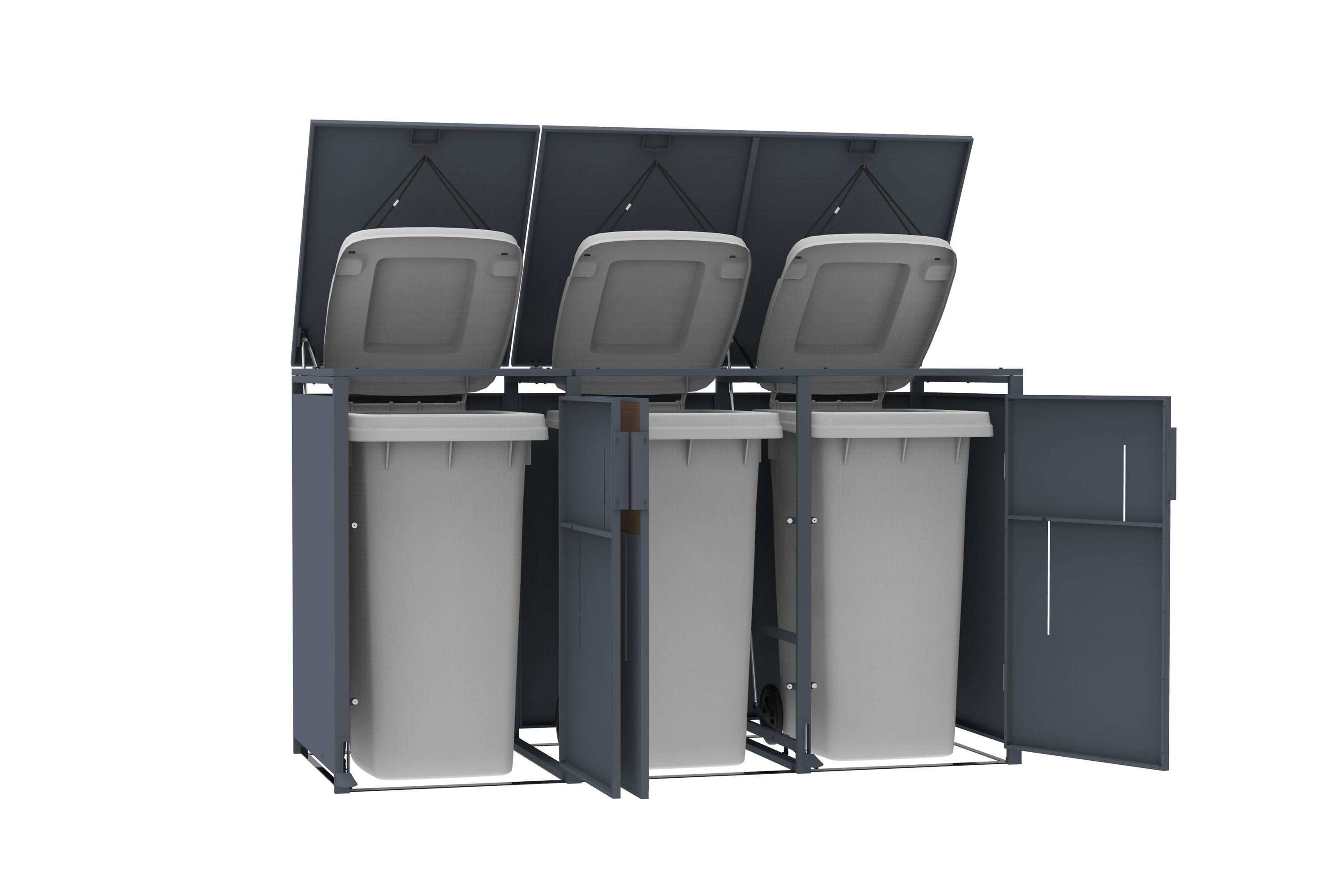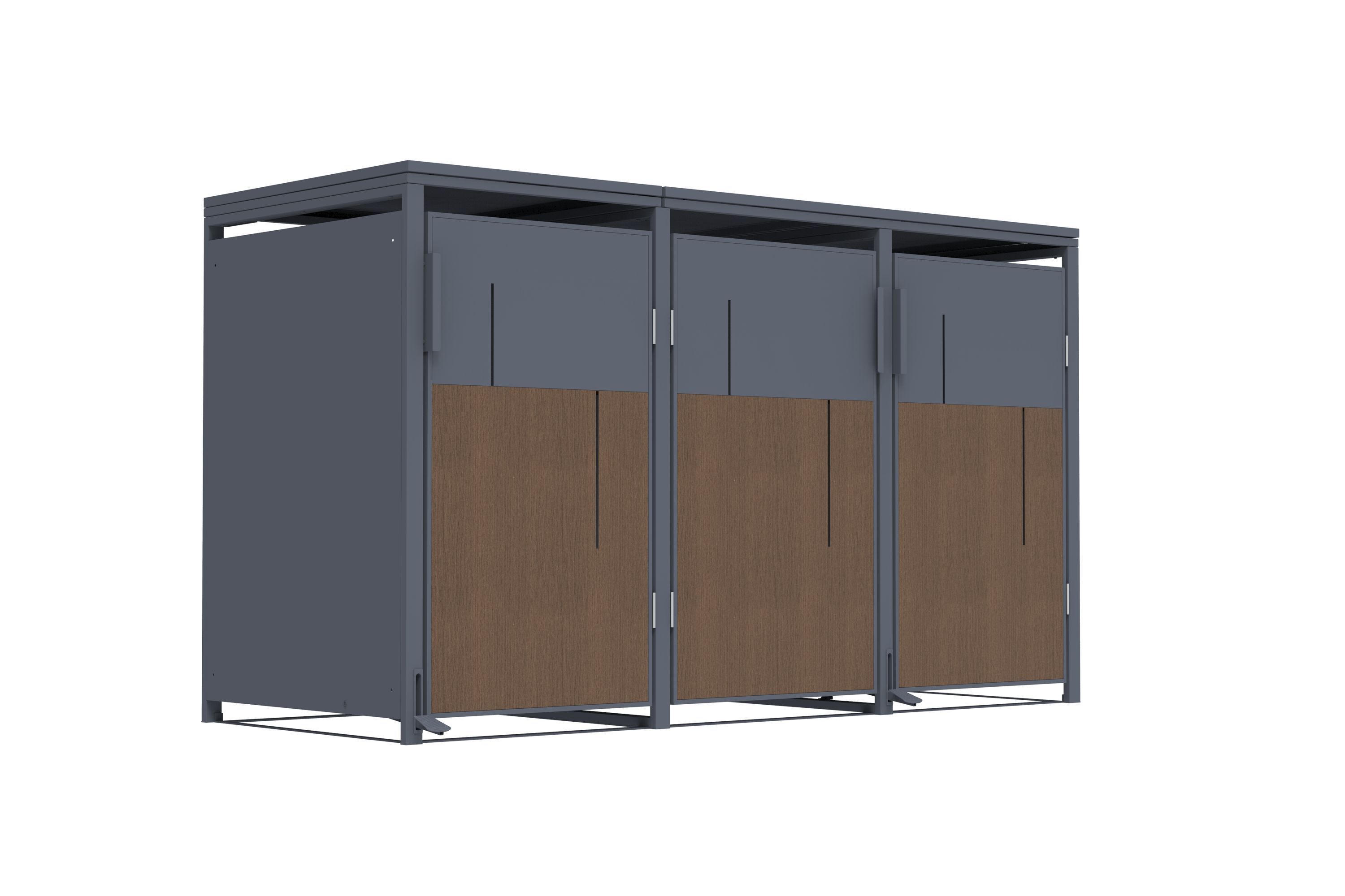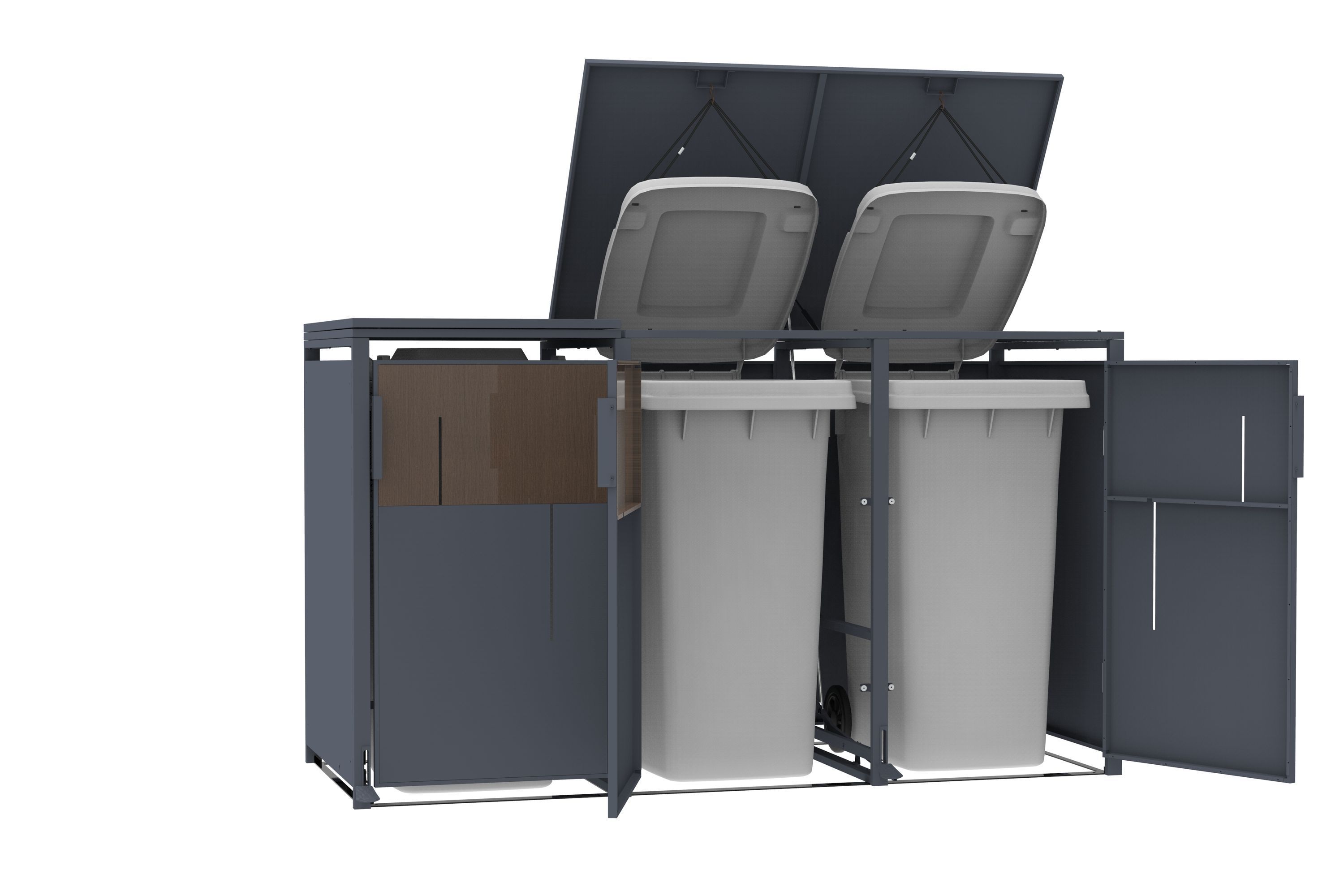 Mülltonnenbox Anthrazit mit Holzoptik für 3 Mülltonnen 240L 198x80x116cm Pedal