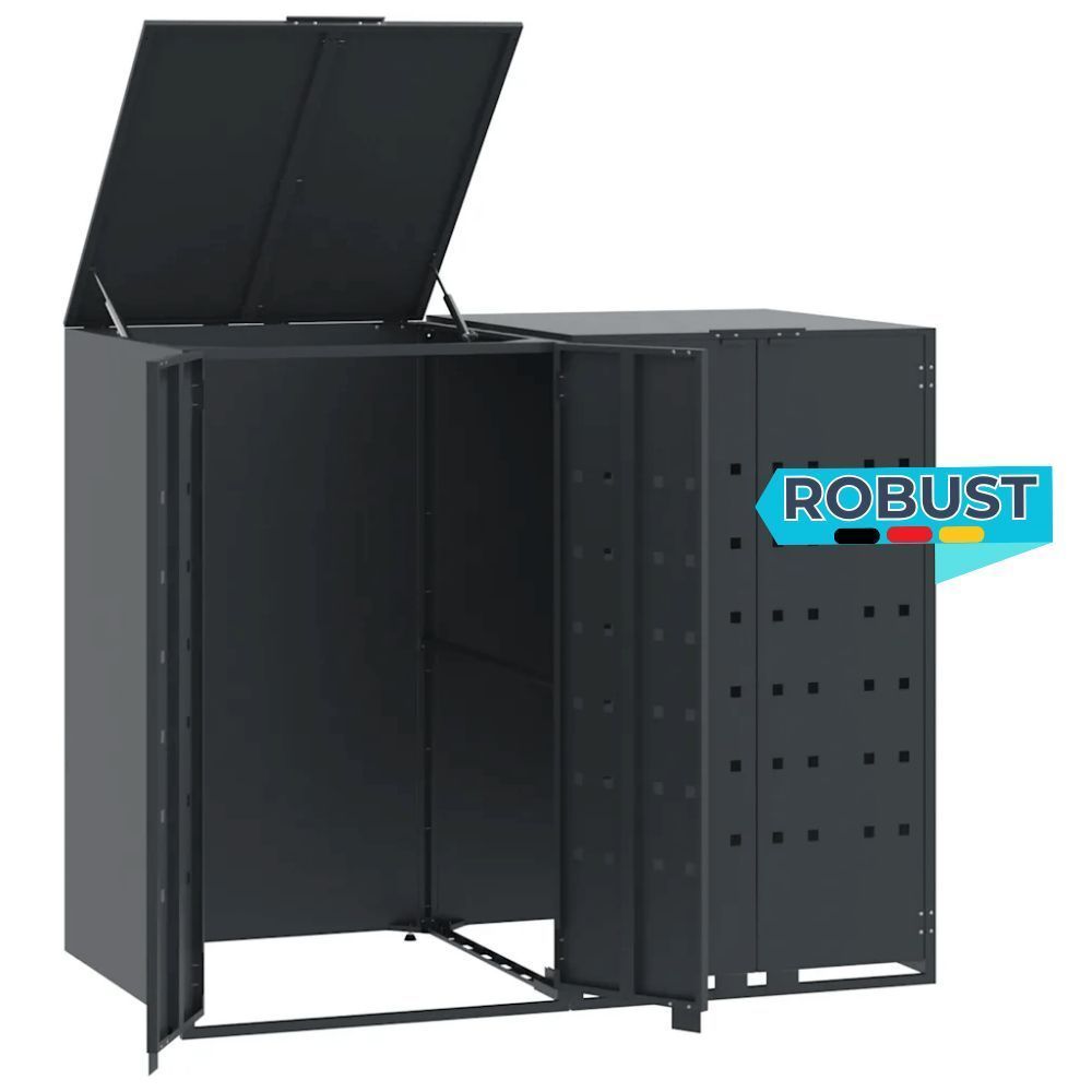 Mülltonnenbox GORILO für 2 Tonnen Anthrazit 138x79x117 cm Stahl Mülltonnenverkleidung