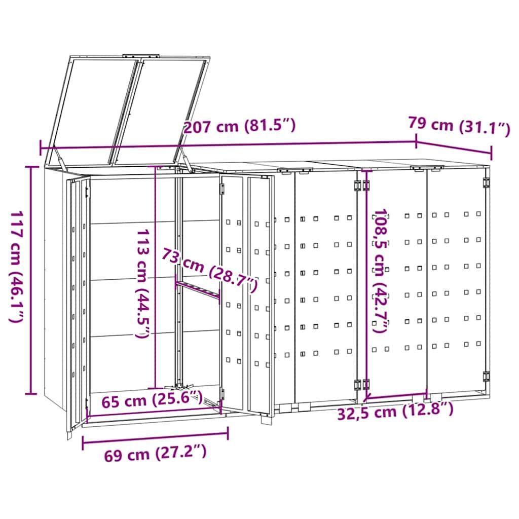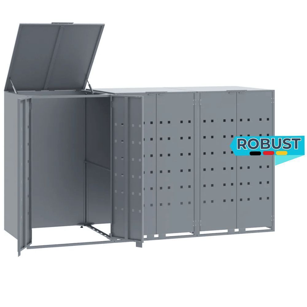 Mülltonnenbox GORILO für 3 Tonnen Grau 207x79x117 cm Stahl Mülltonnenverkleidung 3er