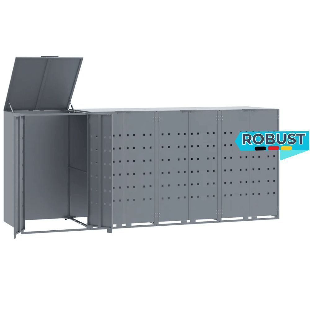 Mülltonnenbox GORILO für 4 Tonnen Grau 276x79x117 cm Stahl Mülltonnenverkleidung 4er