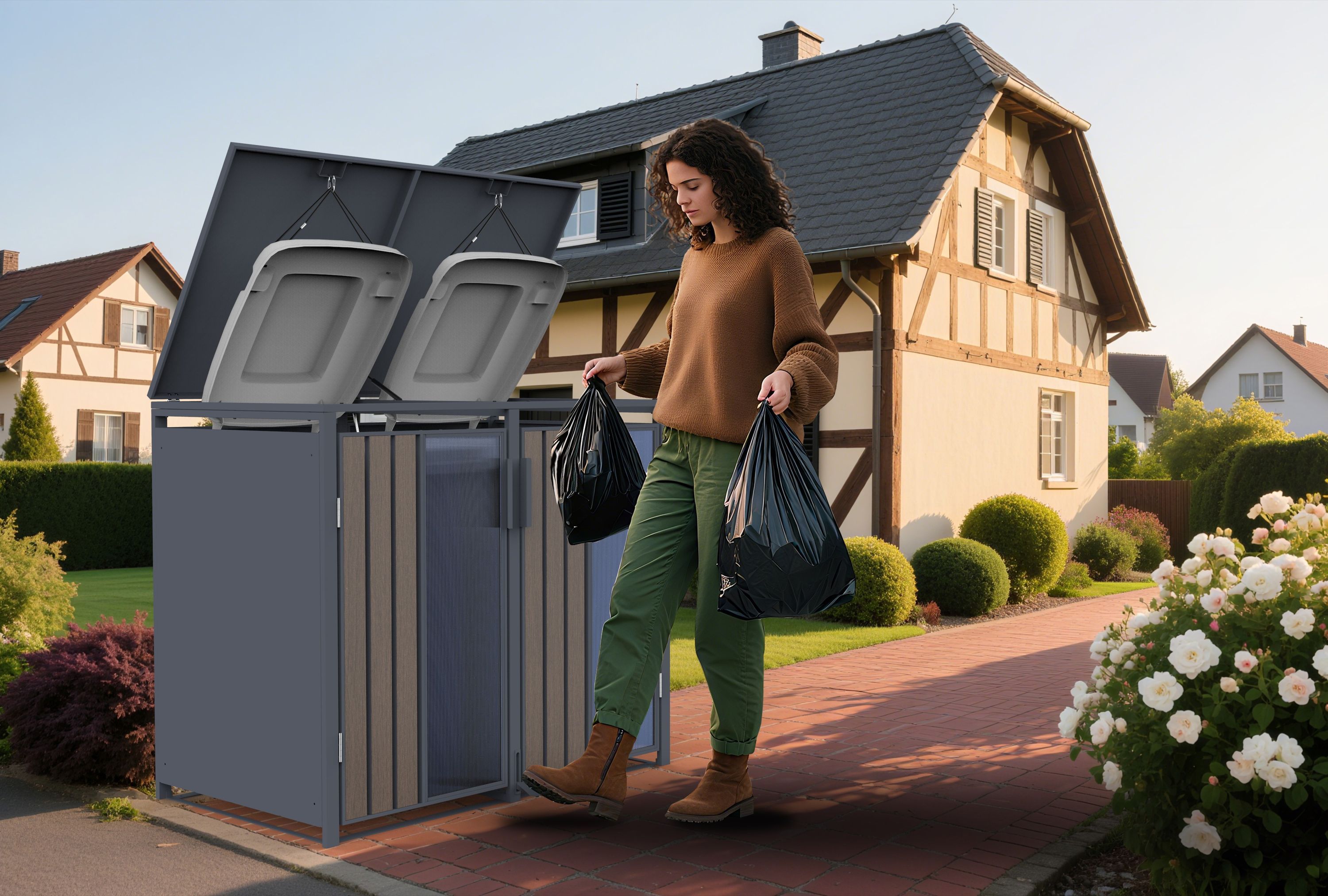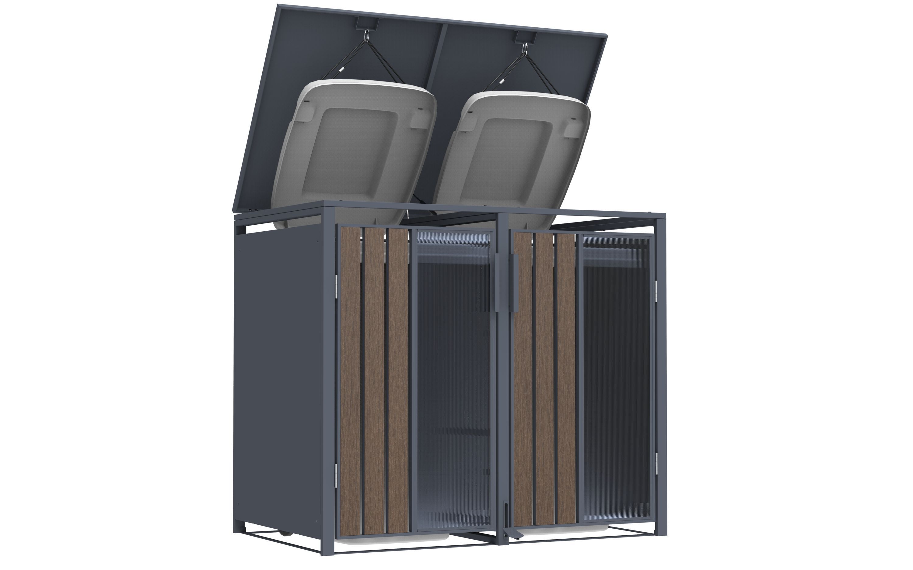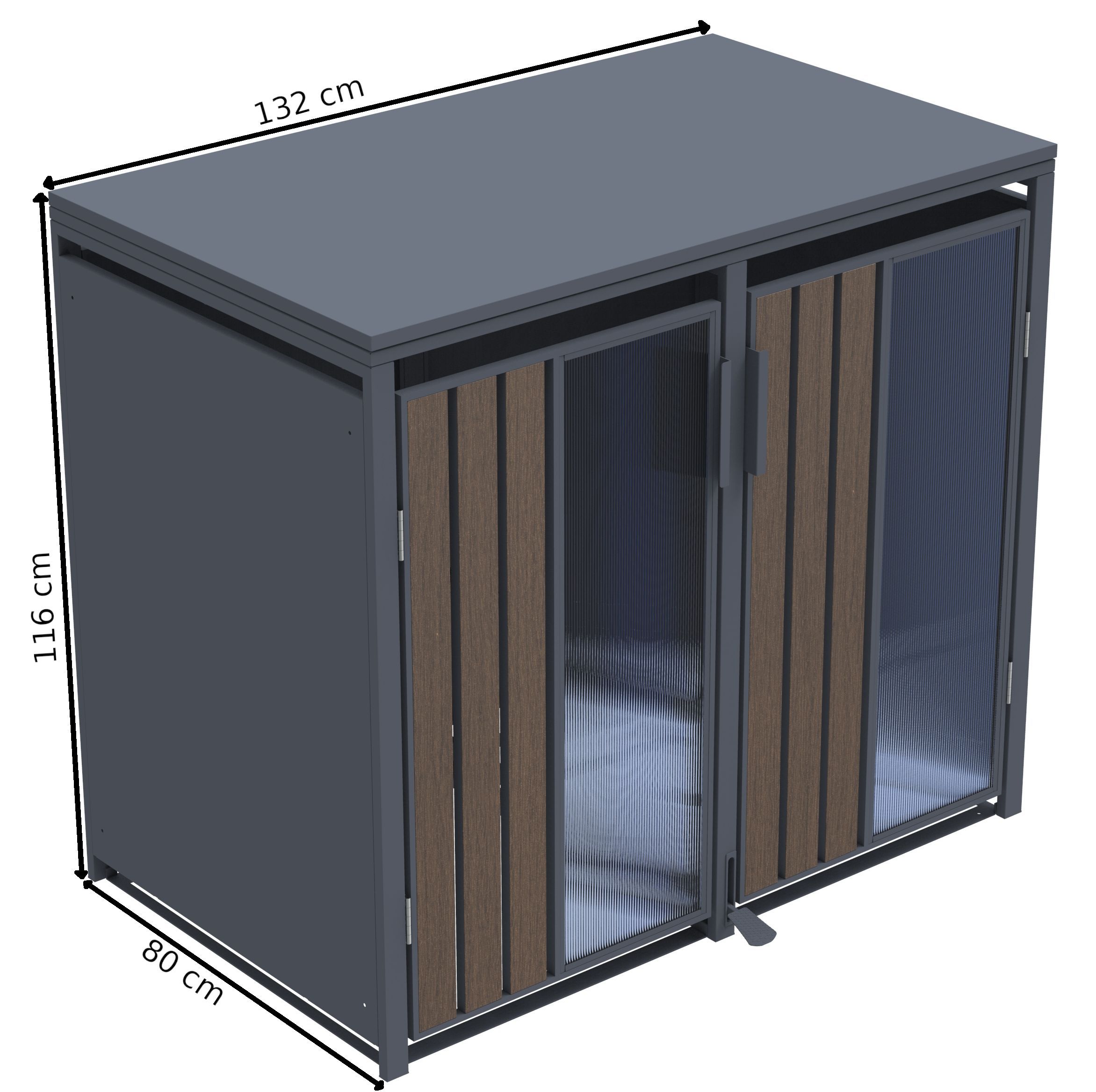 Mülltonnenbox Holzoptik mit Plexiglas für 2 Mülltonnen 240L 132x80x116cm Pedal