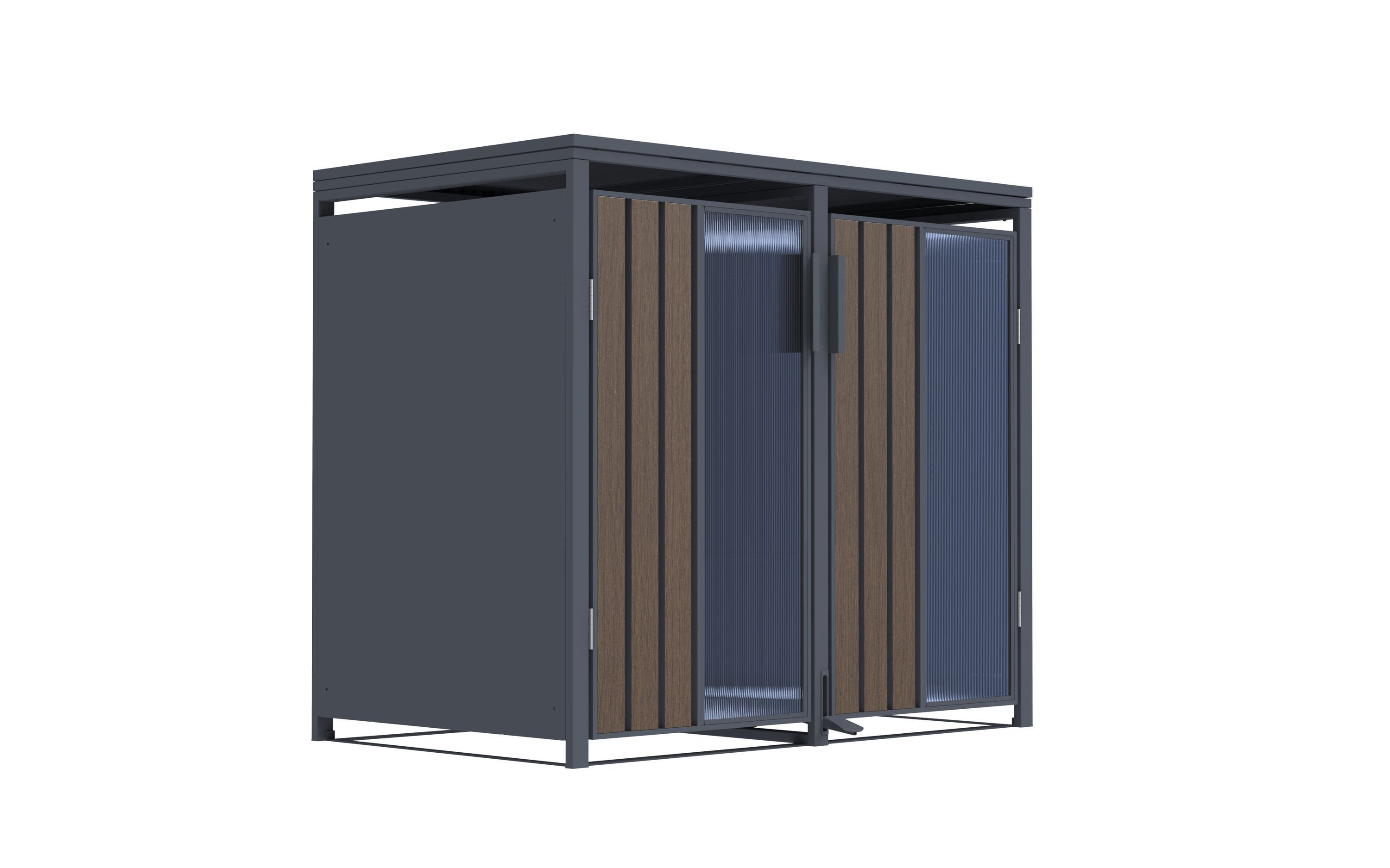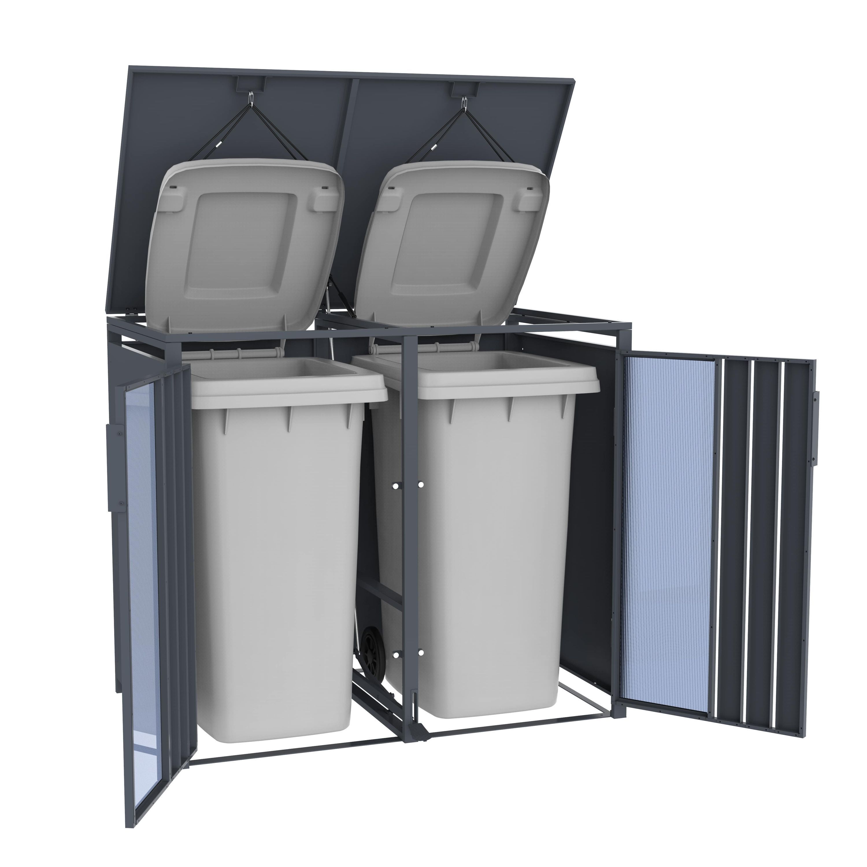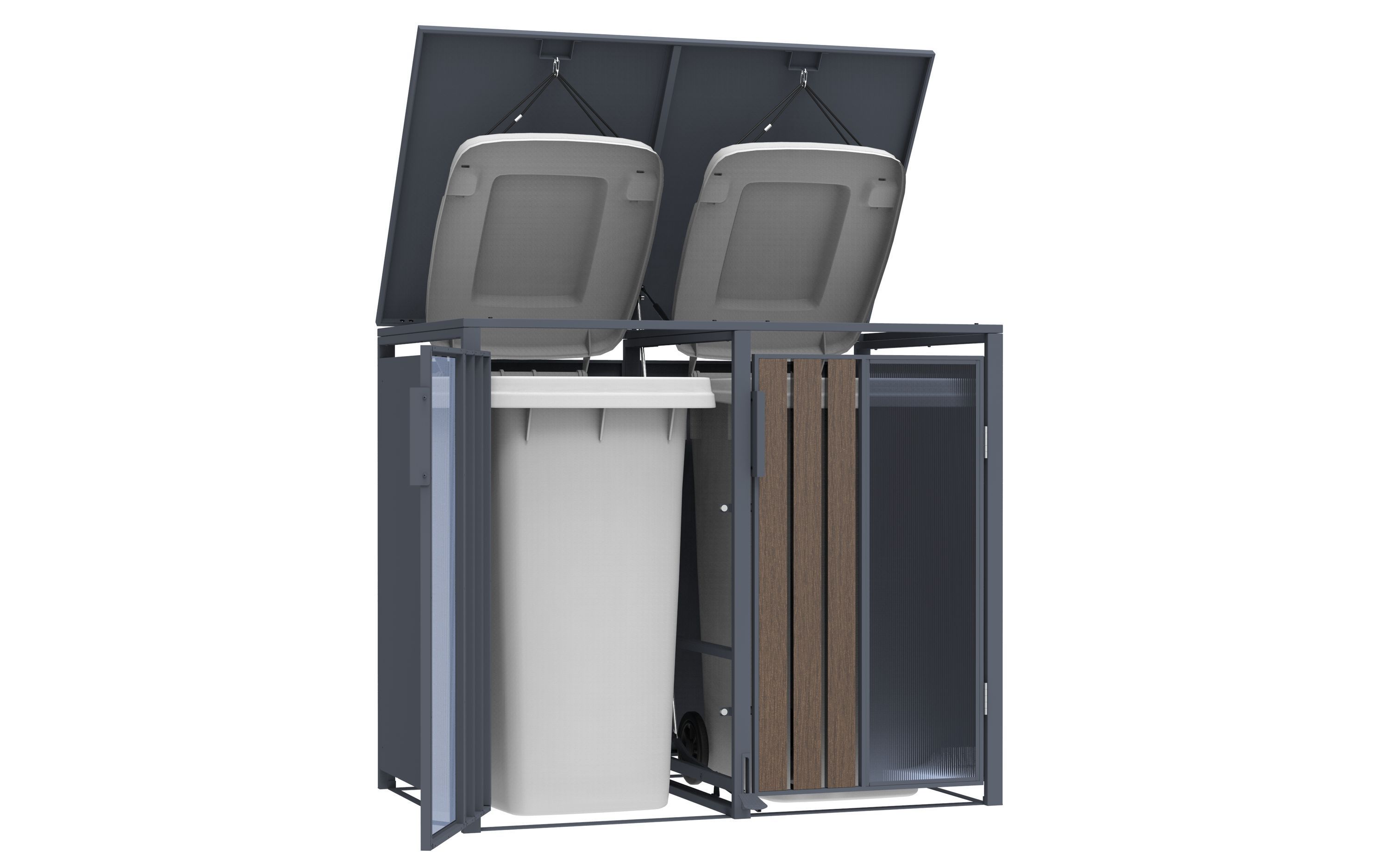 Mülltonnenbox Holzoptik mit Plexiglas für 2 Mülltonnen 240L 132x80x116cm Pedal