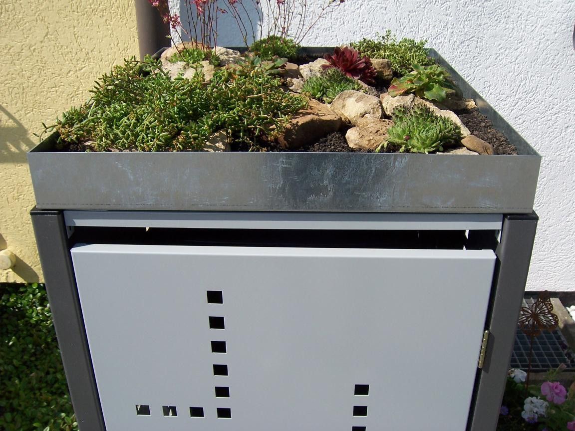 1er Mülltonnenbox aus Metall beschichtet Pflanzdach - in Deutschland hergestellt