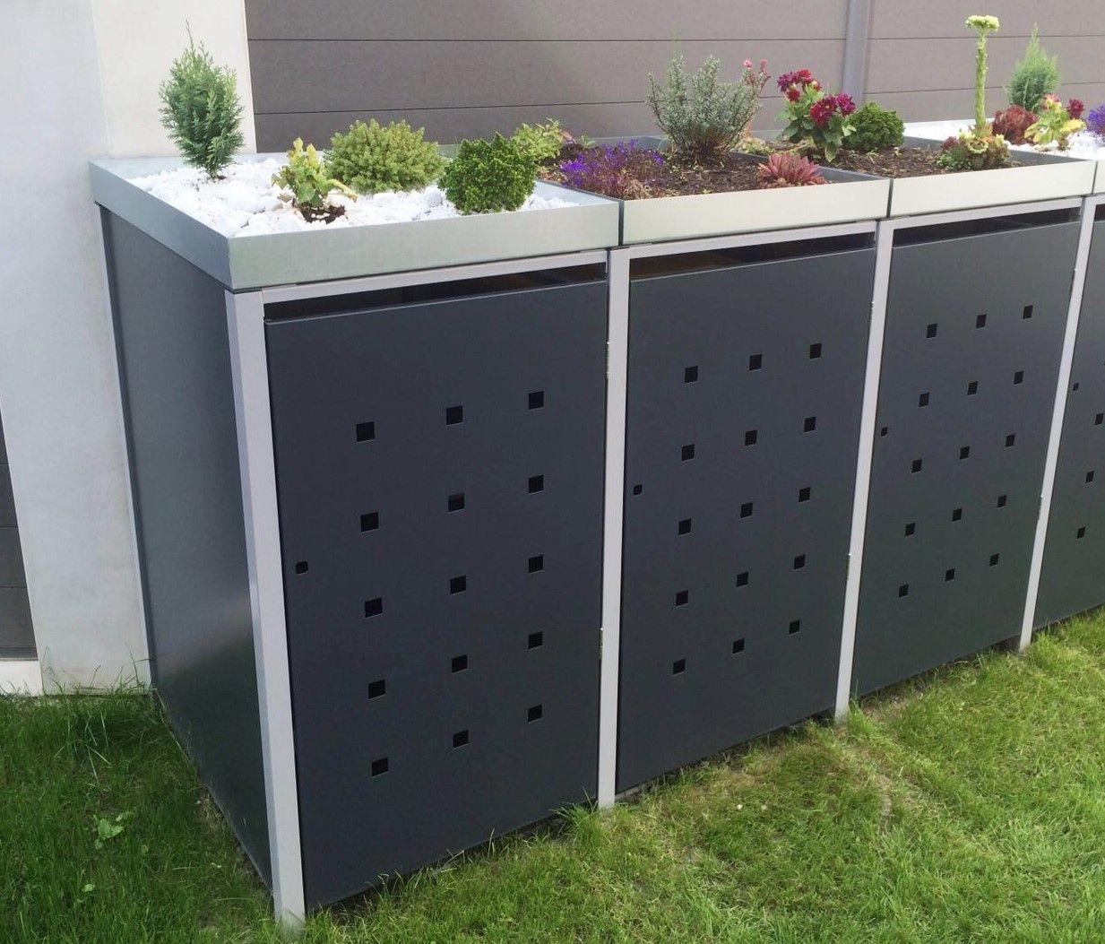 Mülltonnenbox Metall Pflanzdach für 3 Tonnen (120L + 240L) Müllbox beschichtet