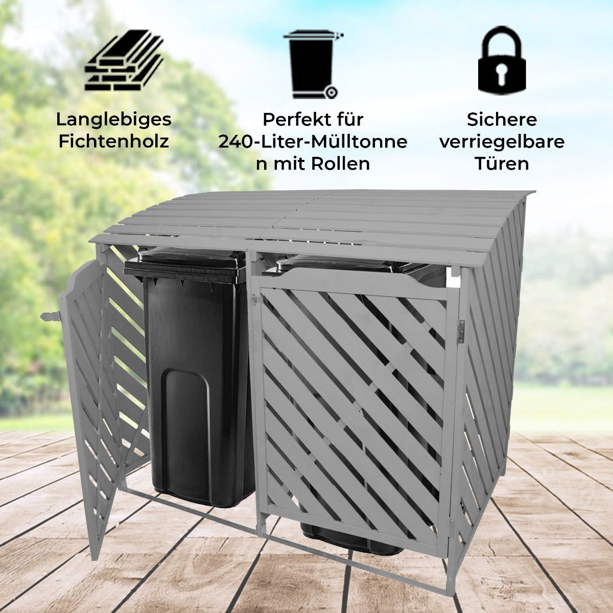 Mülltonnenverkleidung 2er Tonnen Mülltonenbox Mülltonnenschrank Mülltonne Abdeckung