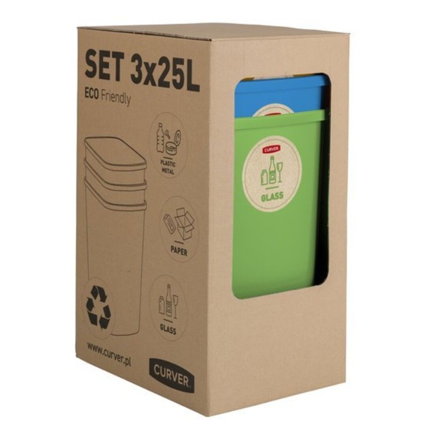 CURVER Mülltrennungssystem Mülleimer Mülltrennung Papier Glas und Kunststoff Recycling