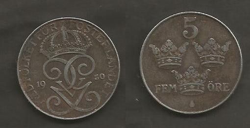 Münze Alt - Schweden: 5 Öre 1950 - Eisen