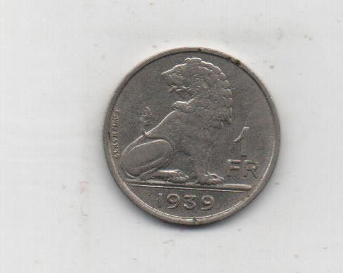 Münze Belgien 1 Franc 1939