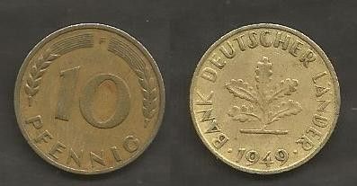 Münze Bundesrepublik Deutschland ( BRD ): 10 Pfennig 1949 - F
