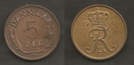 Münze Dänemark: 5 Öre 1966