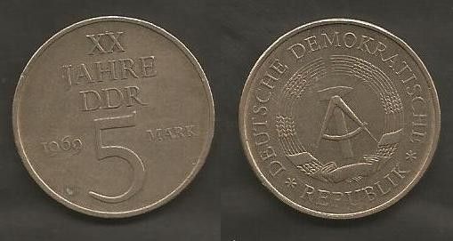 Münze Deutsche Demokratische Republik: 5 Mark 1969 - 20 Jahre DDR