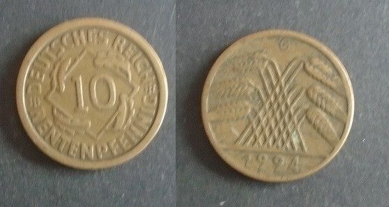 Münze Deutsches Reich: 10 Rentenpfennig 1924 - G