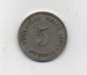 Münze Deutsches Reich 5 Pfennig 1907