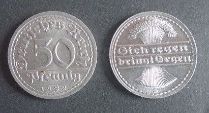 Münze Deutsches Reich: 50 Reichspfennig 1922 - D - Vorzüglich