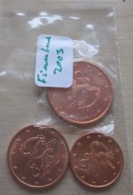Finnland 2003 1 + 2 + 5 Cent-Münzen 2003 - uncirkuliert - bankfrisch