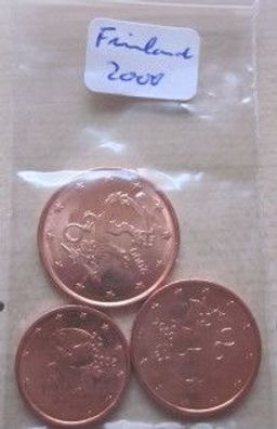 Finnland 2000 1 + 2 + 5 Cent-Münzen- 2000 - uncirkuliert - bankfrisch