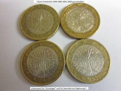 Frankreich-1 €uro-Münzen-1999-2000-2001-2002- 4 x 1 €-Frankreich-Umlauf