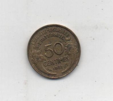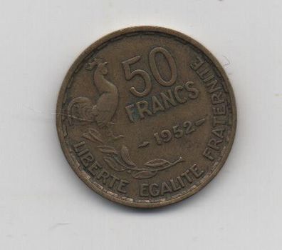 Frankreich: 50 Francs 1951 Münze, Erhaltung: sehr gut, Bronze-Aluminium, 8 gr., 27 mm