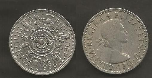 Münze Großbritanien: 2 Shilling 1966